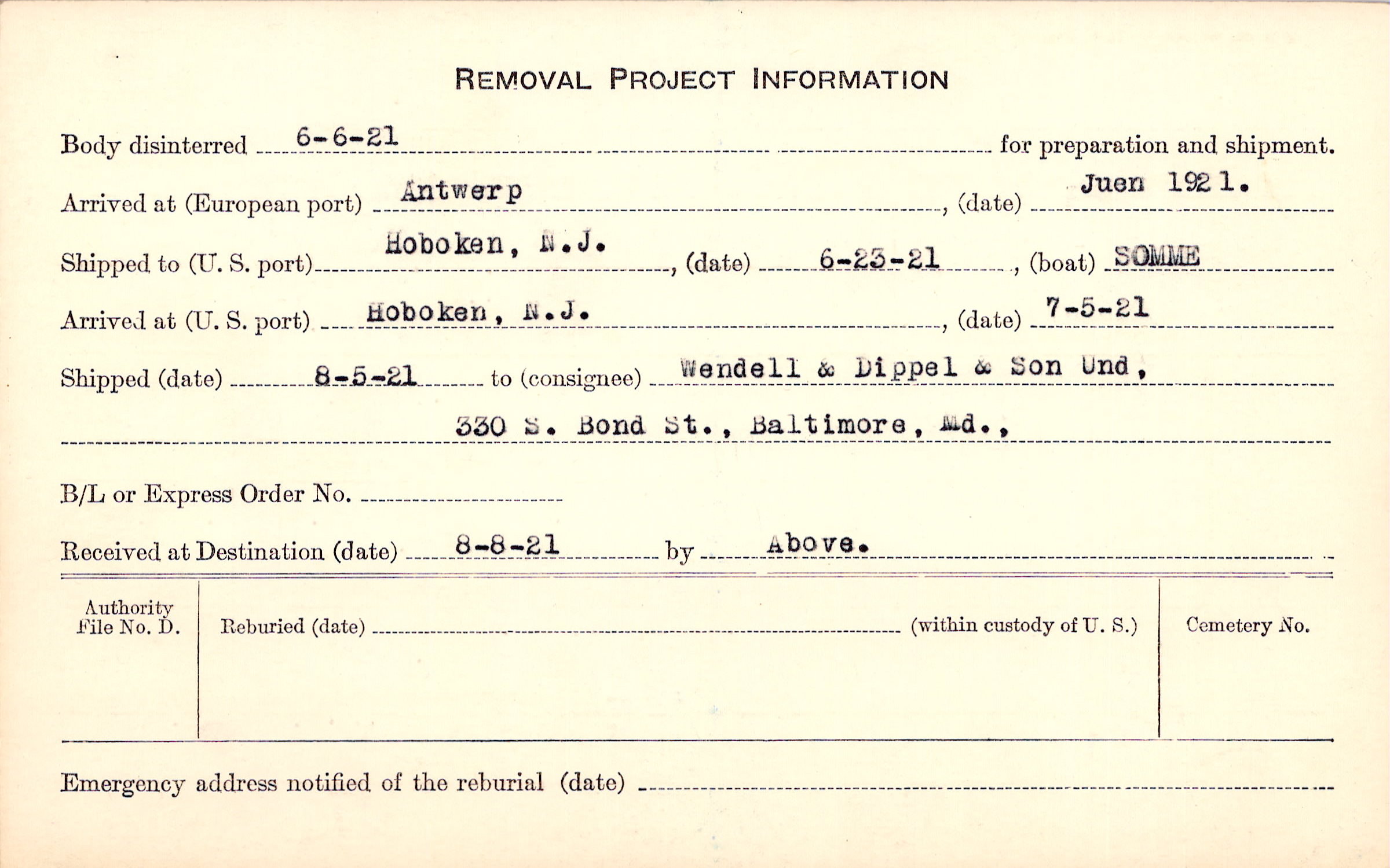 to Wendell & Dippel & Son Und, 330 S. Bond St., Baltimore, Md.,