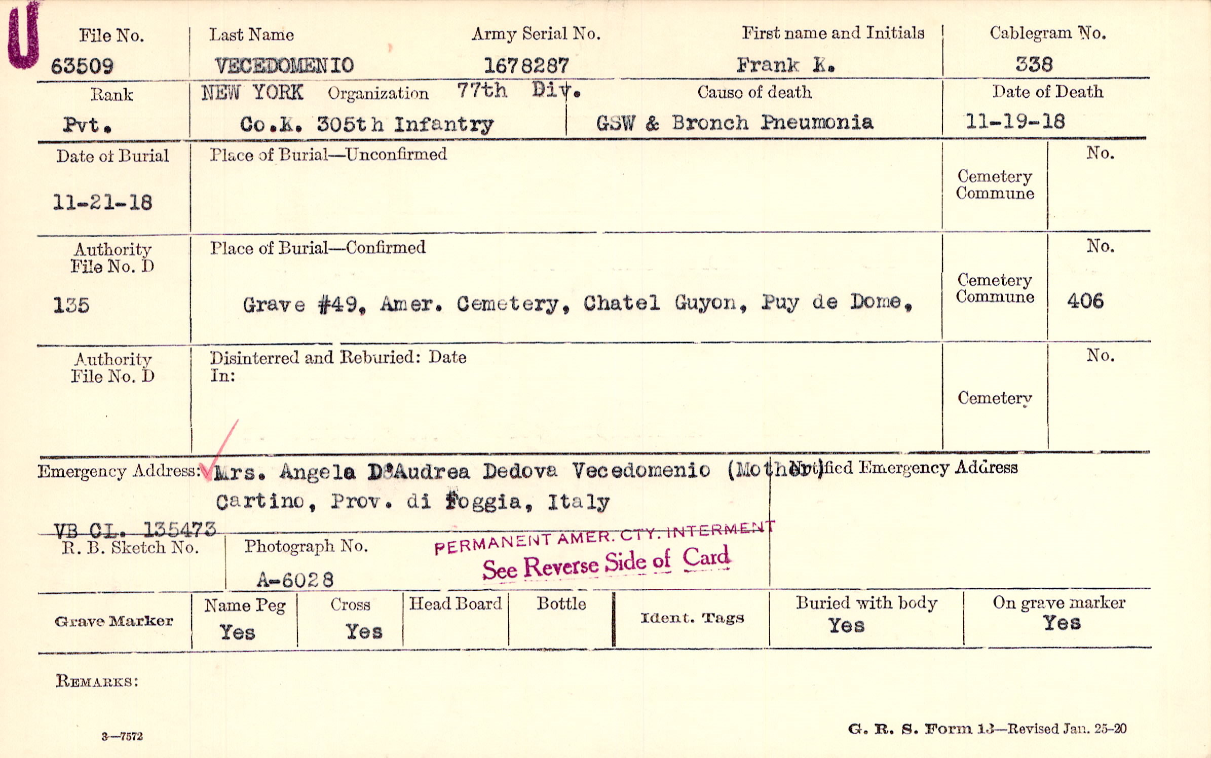 Mrs. Angela D'Audrea Dedova Vecedomenio (Mother), Cartino, Prov. di Foggia, Italy, VB CL. 135473