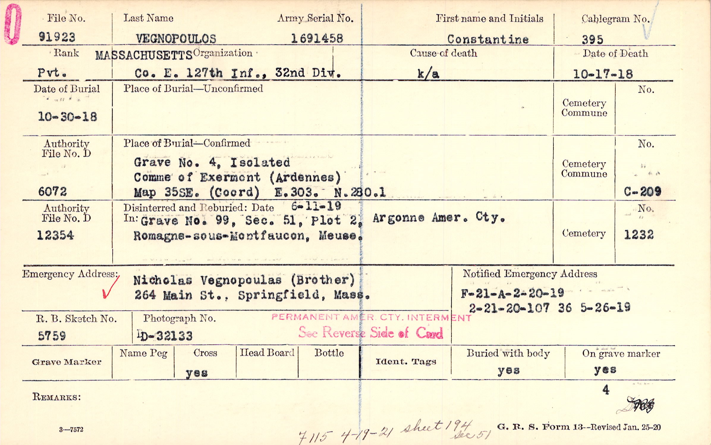 Nicholas Vegnopoulas ( Brother), 264 Main St., Springfield, Mass.