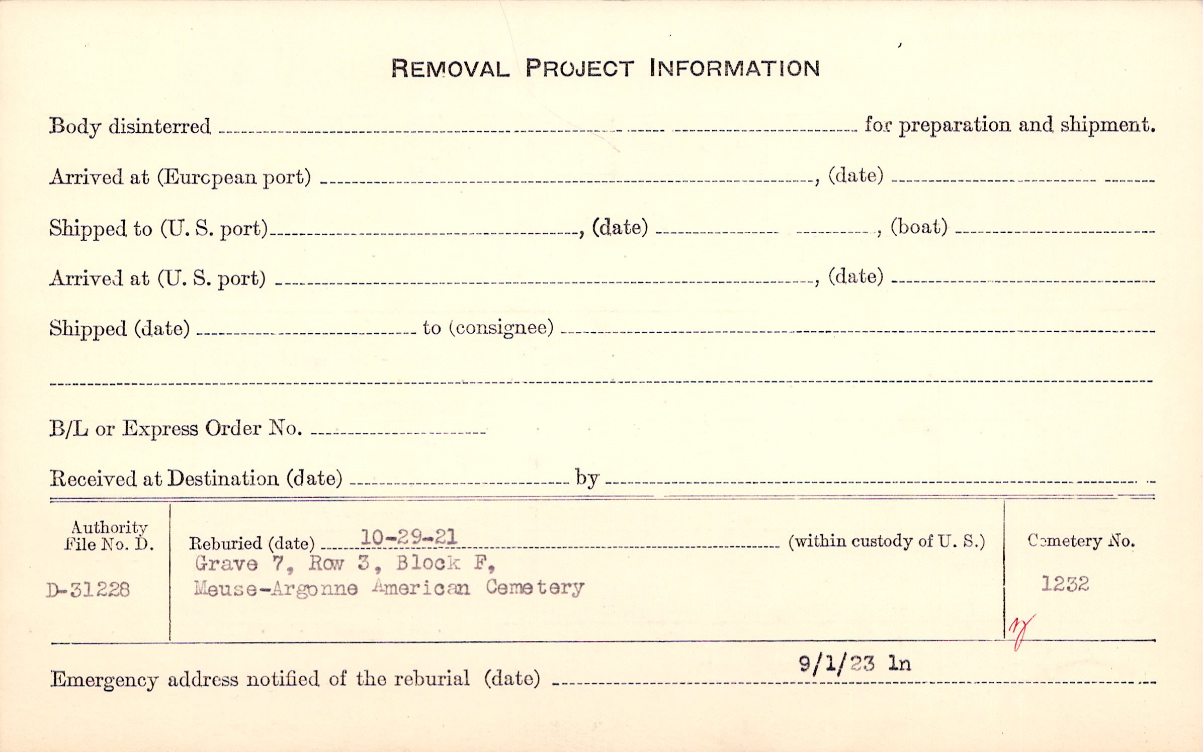 Grave 99, Section 51, Plot 2, Argonne American Cemetery, Romagne-sous-Montfaucon, Meuse