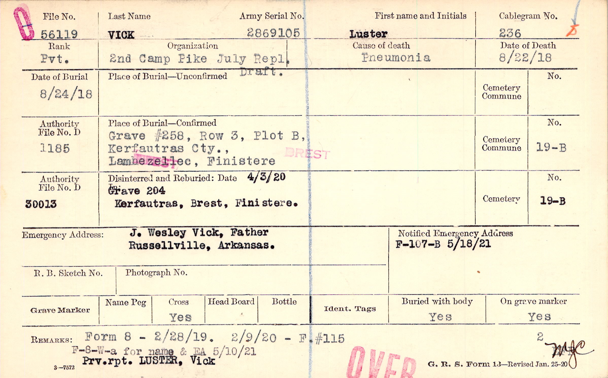 Grave #258, Row 3, Plot B, Kerfautras Cty., Lambezellec, Finistere