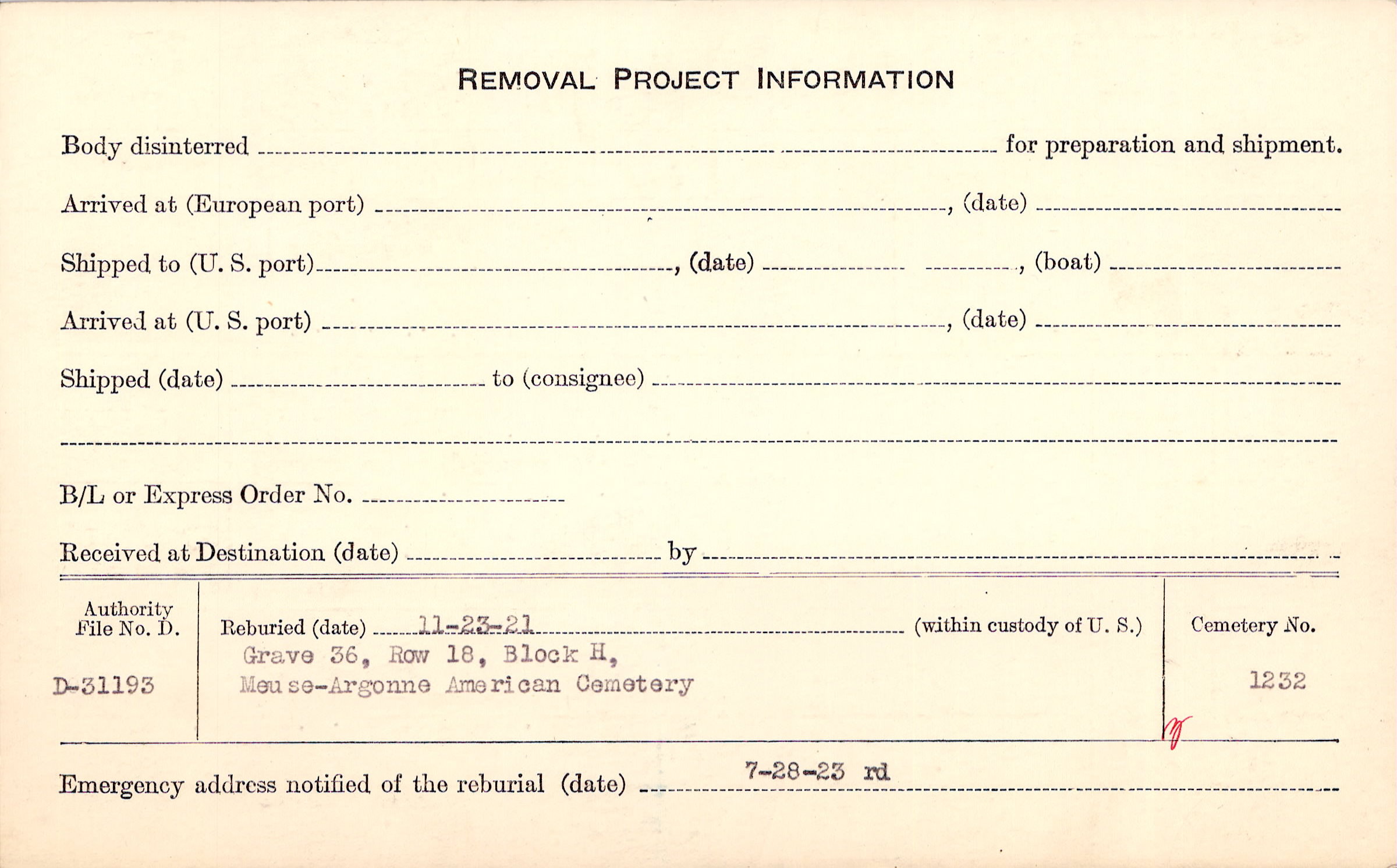 Grave 126, Section 46, Plot 3, Argonne American Cemetery, Romagne-sous-Montfaucon, Meuse