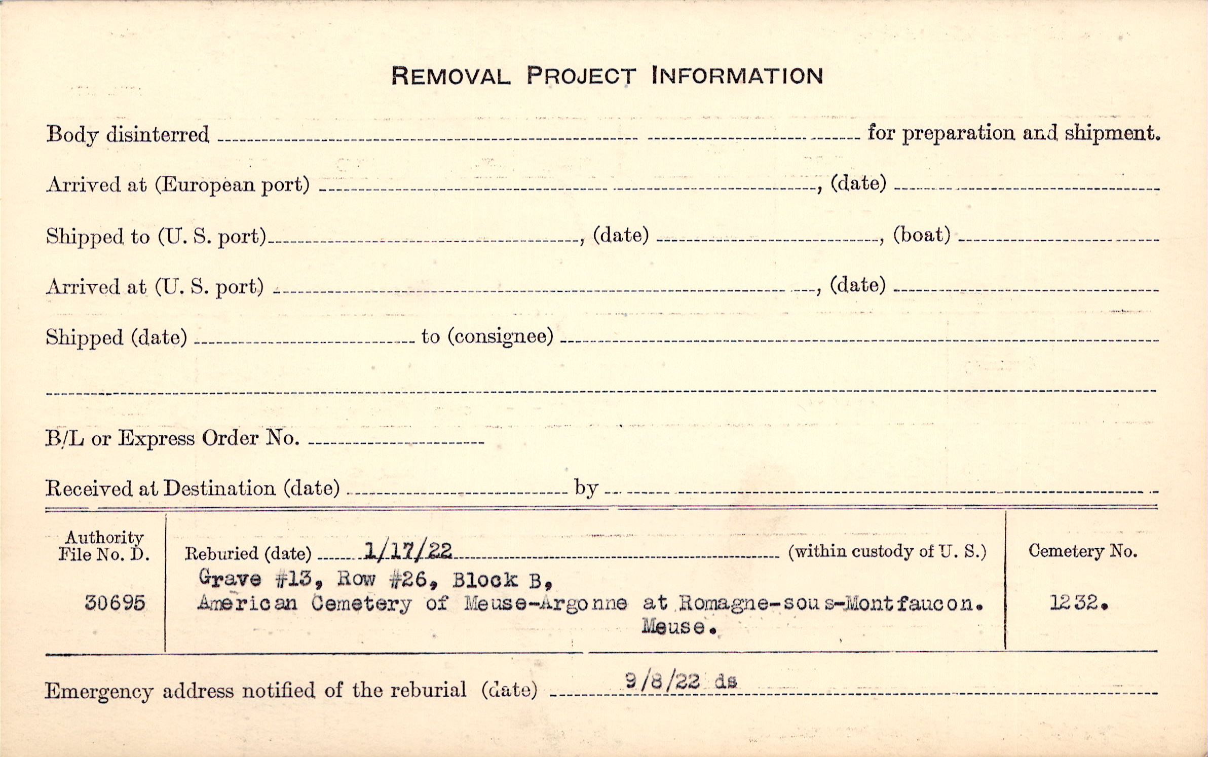 Grave 3, Section 27, Plot 1, Argonne American Cemetery, Romagne-sous-Montfaucon, Meuse