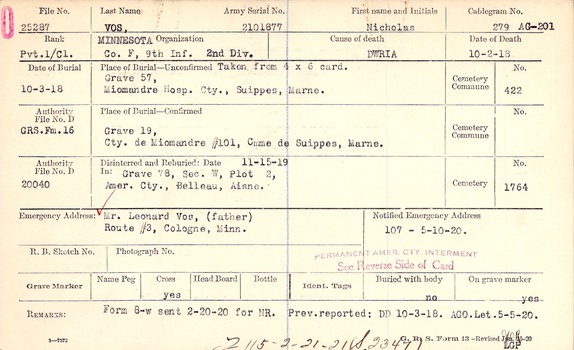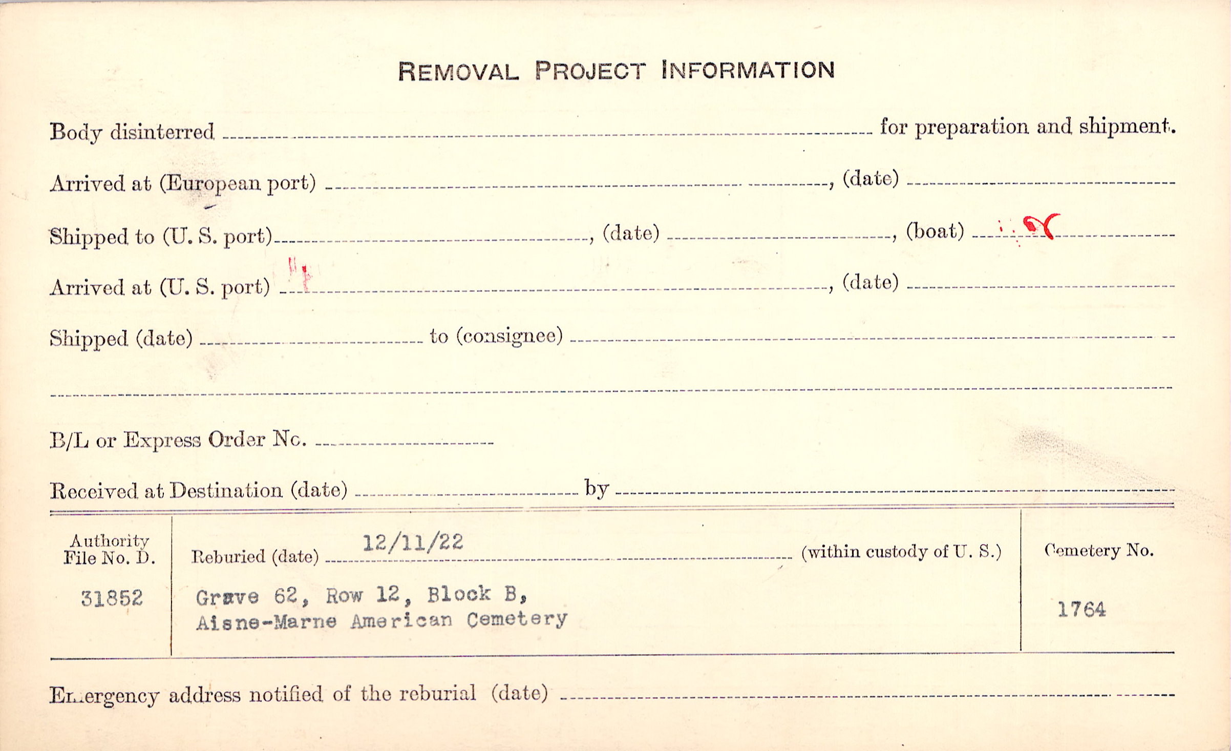 | Permanent Burial in Foreign Cemetery |