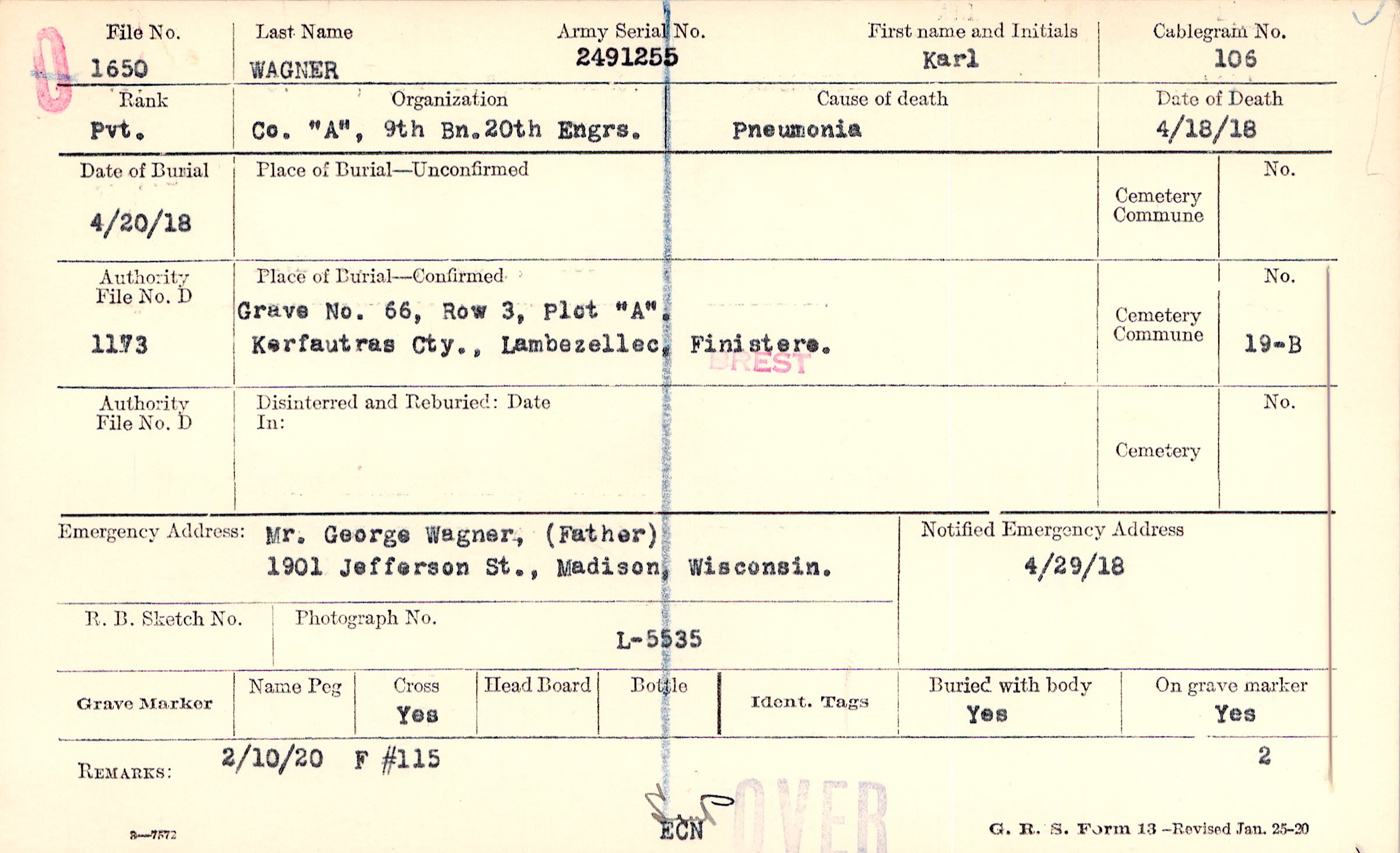 Grave 66, Row 3, Plot "A"., Kerfautras Cty., Lambezellec, Finistere