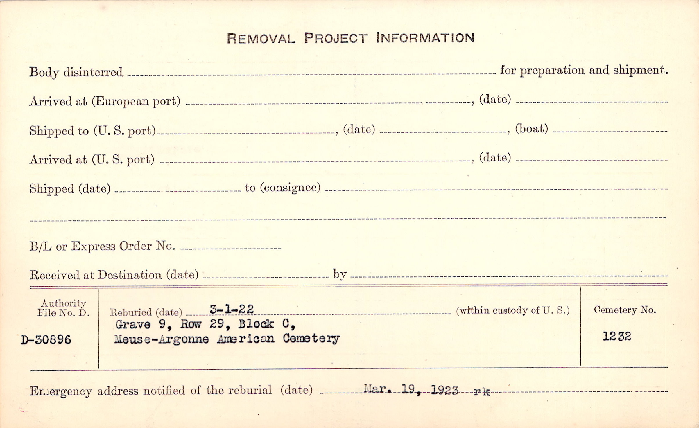 Grave 75, Section 7, Plot 2, Argonne American Cemetery, Romagne-sous-Montfaucon, Meuse