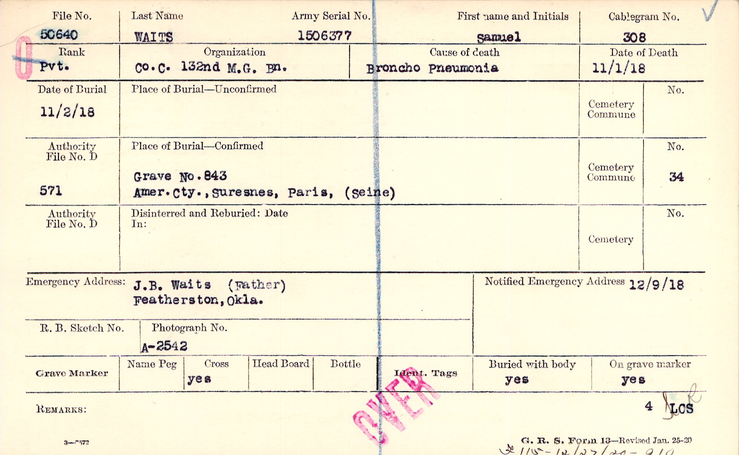 Grave 843, Amer. Cty., Suresnes, Paris, Seine
