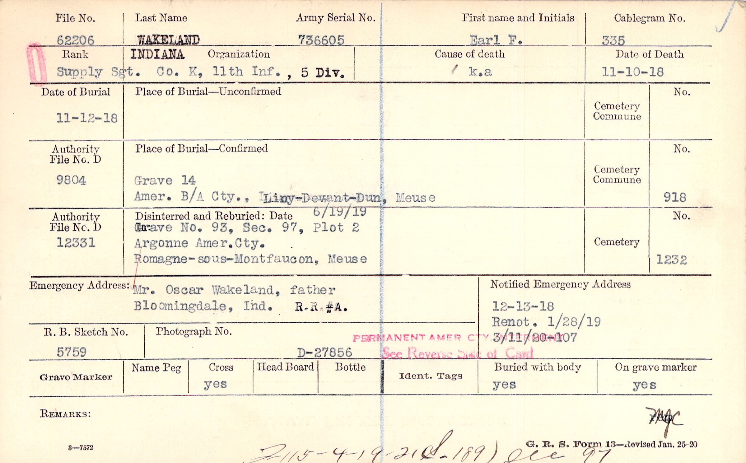 12/13/1918, Renot 1/28/1919, Form 107: 3/11/1920