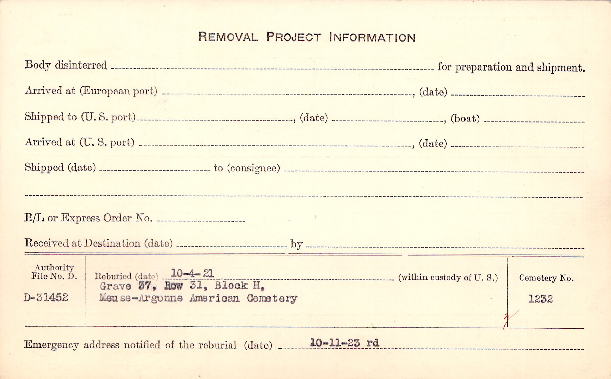 Grave 14, Amer. B/A Cty., Liny-Devant-Dun, Meuse