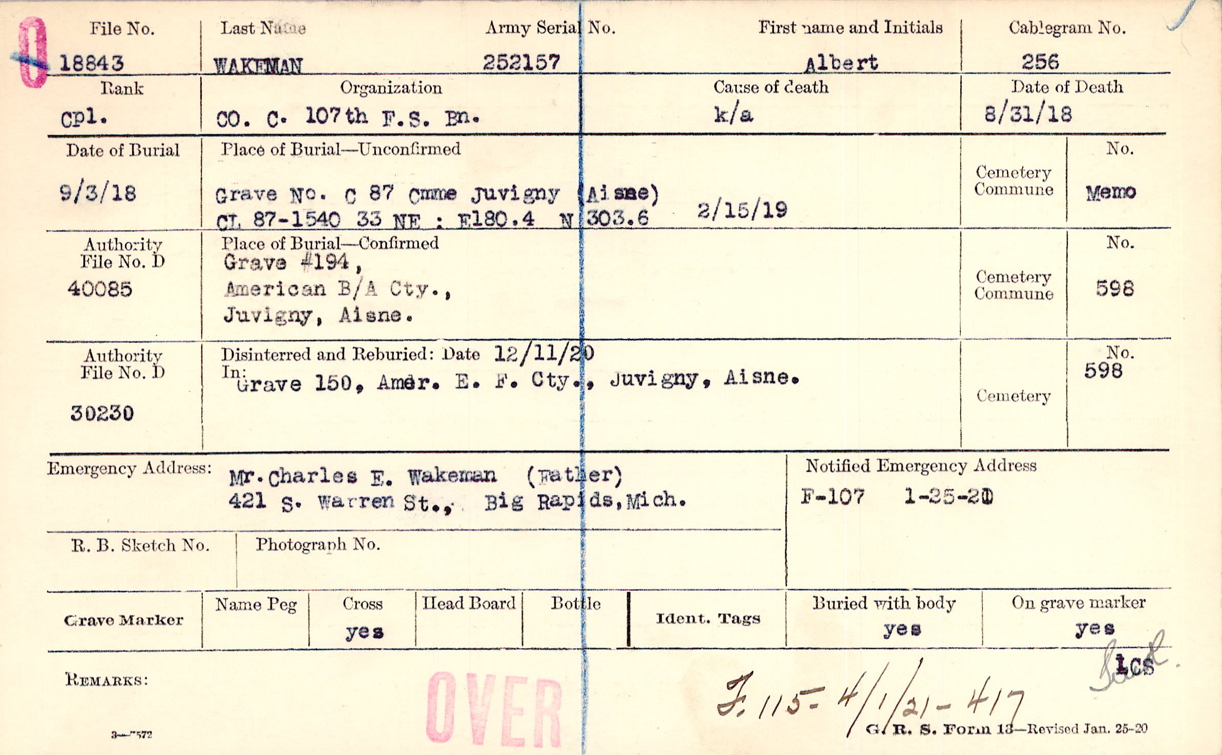 Grave No. C87, Cmme Juvigny, Aisne, CL 87-1540, 33 NE, 2/15/19