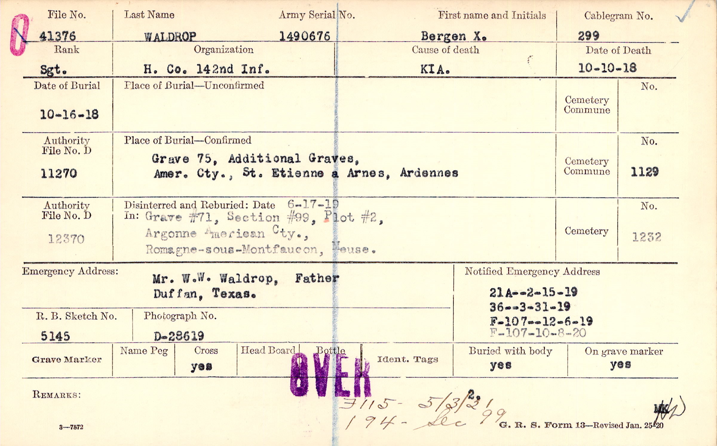 Grave 75, Additional Graves, Amer. Cty., , St. Etienne a Arnes, Ardennes