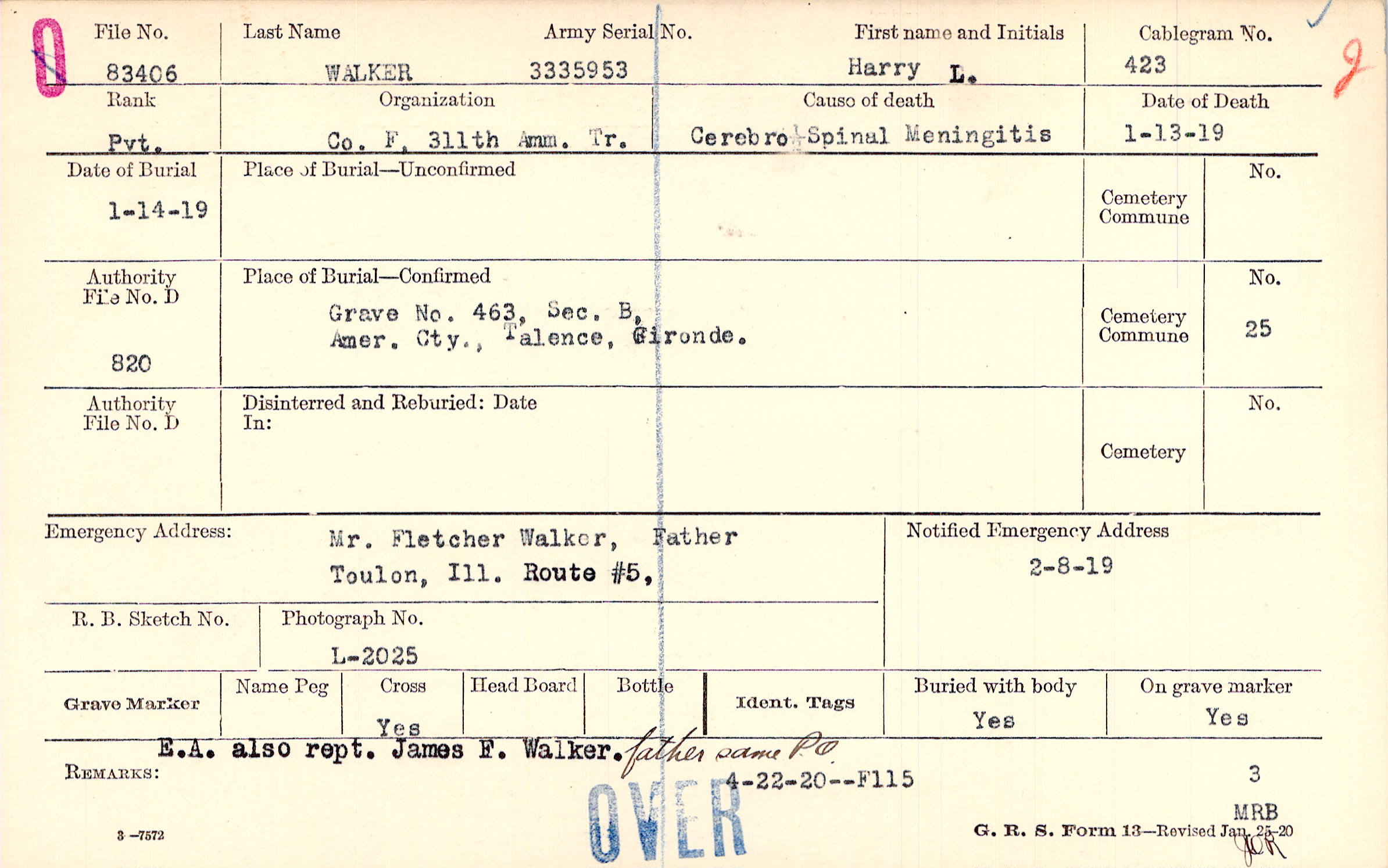 Grave 463, Sec. B, Amer. Cty., Talence, Gironde.