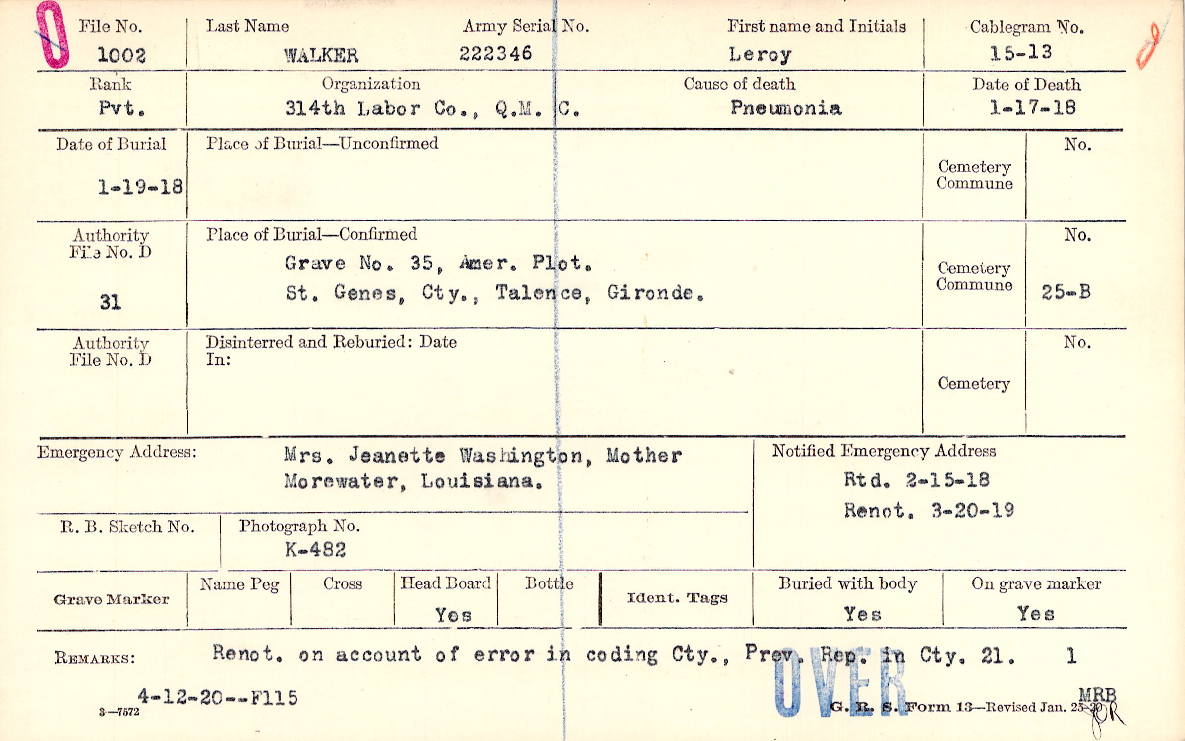 Grave 35, Amer. Plot, St. Genes, Cty., Talence, Gironde