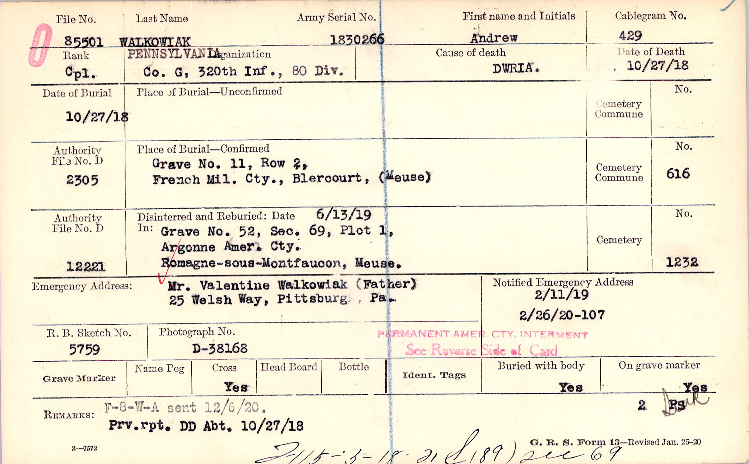 Mr. Valentine Walkowiak (Father), 25 Welsh Way, Pittsburg, Pa.