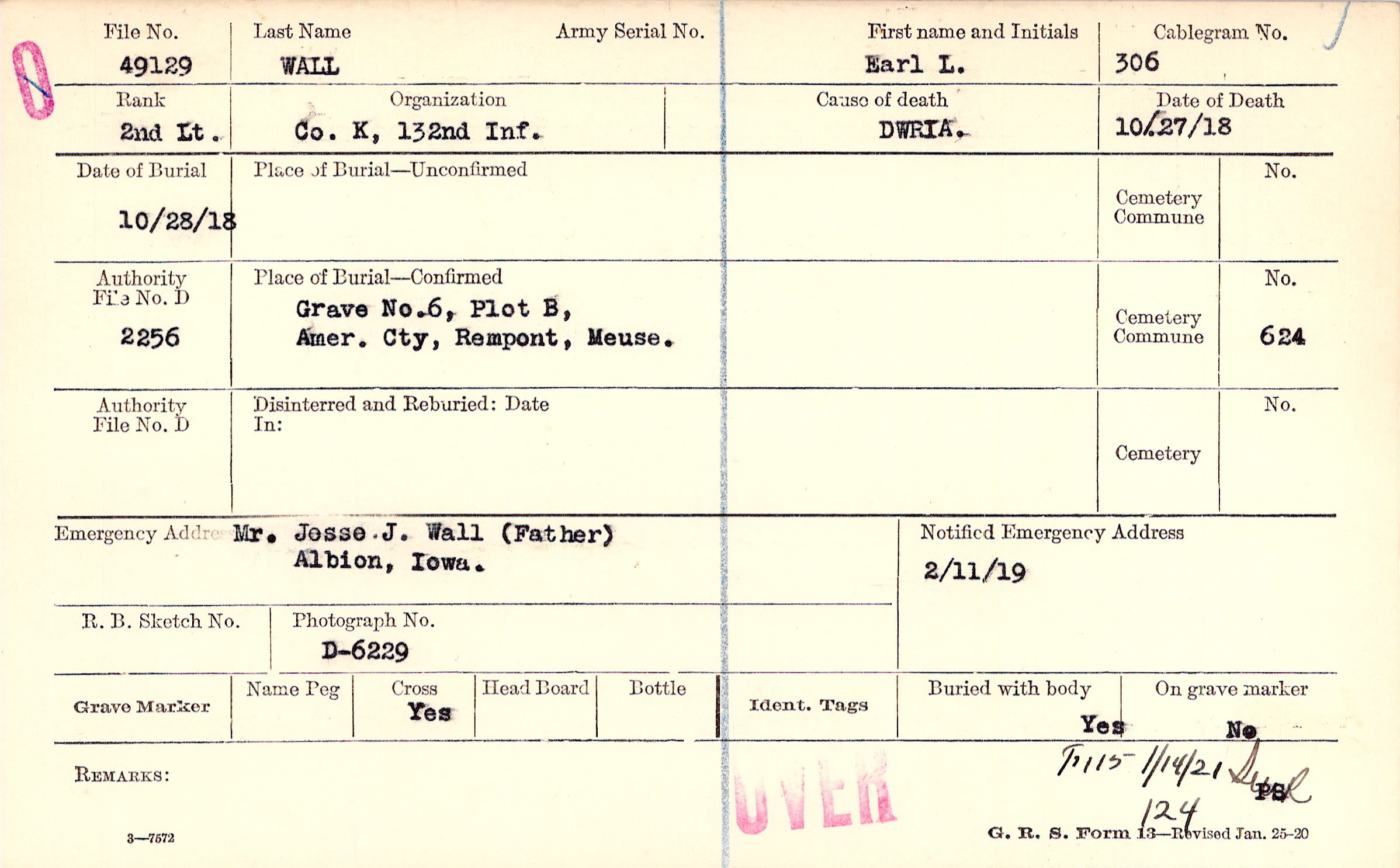 Grave 6, Plot B, Amer. Cty., Rempont, Meuse.