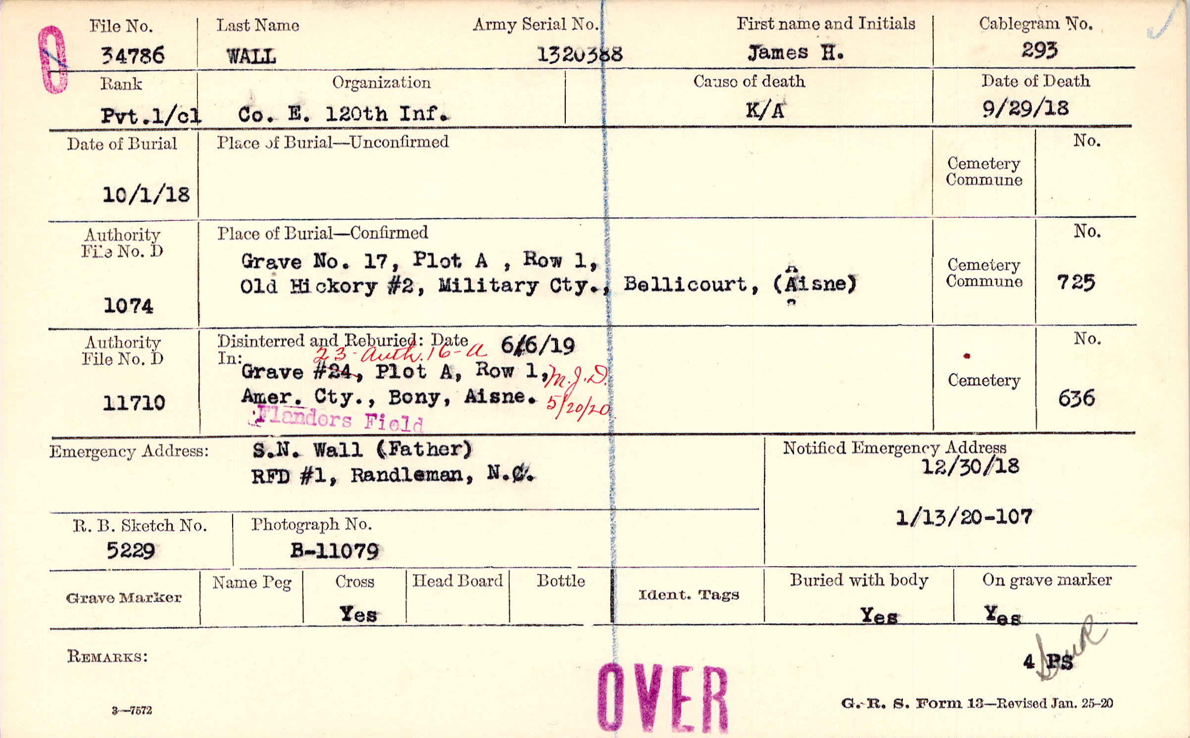 12/30/1918, Form 107: 1/13/1920