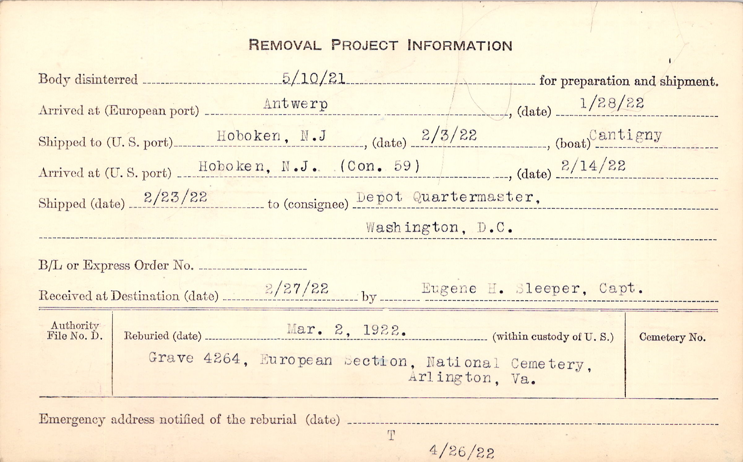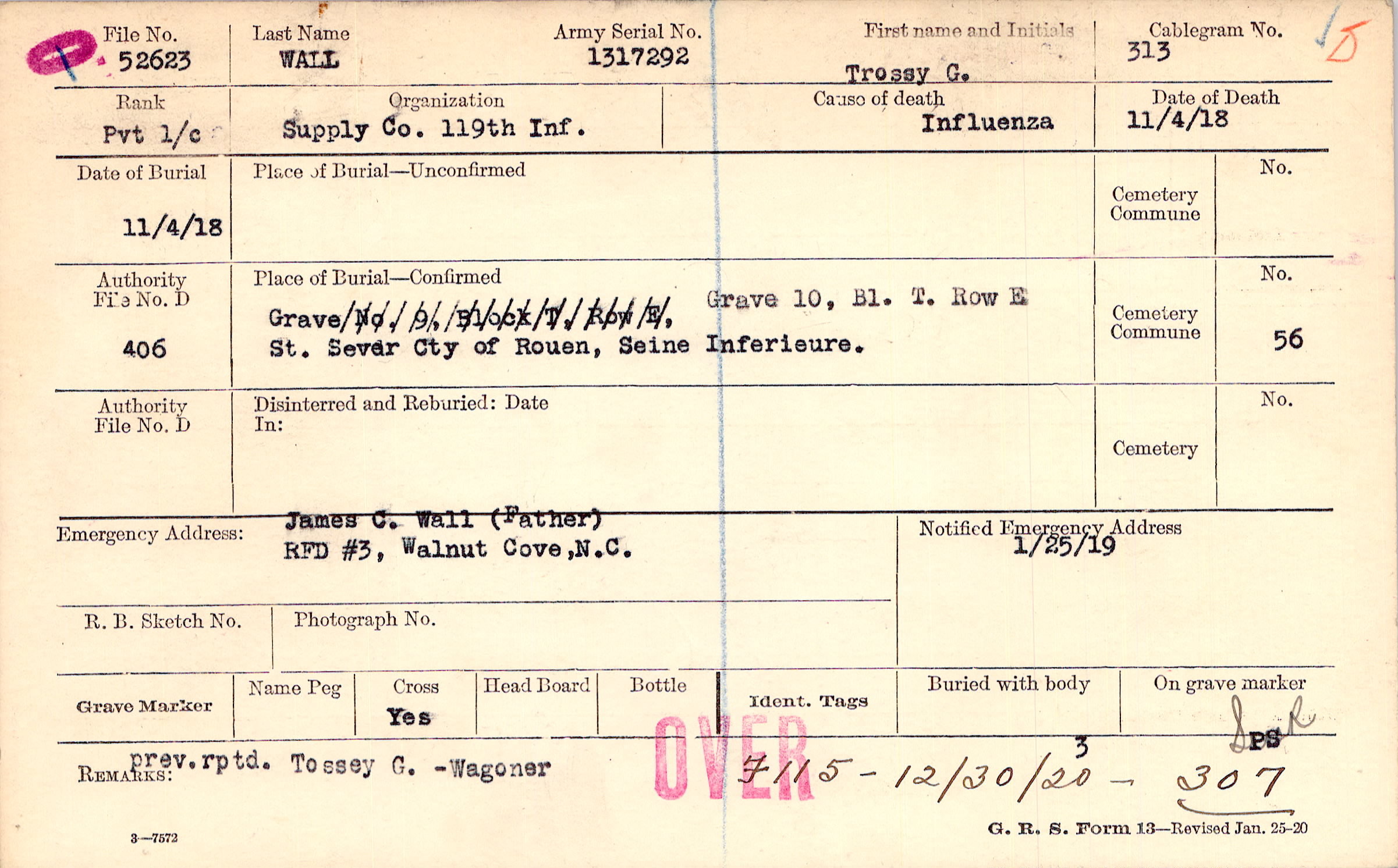 Grave Grave 10, B. T, Row E, St. Sever Cty, of Rouen, Seine Inferieure