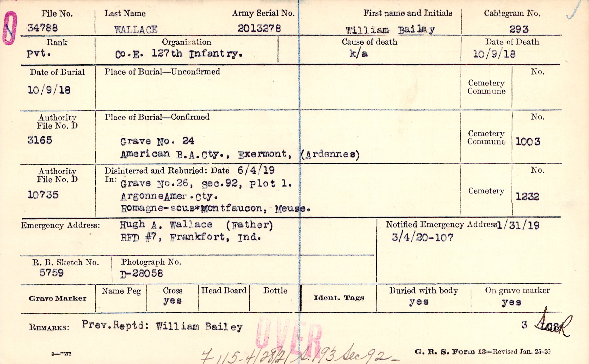 Grave 24, American B/A Cty., Exermont, Ardennes.