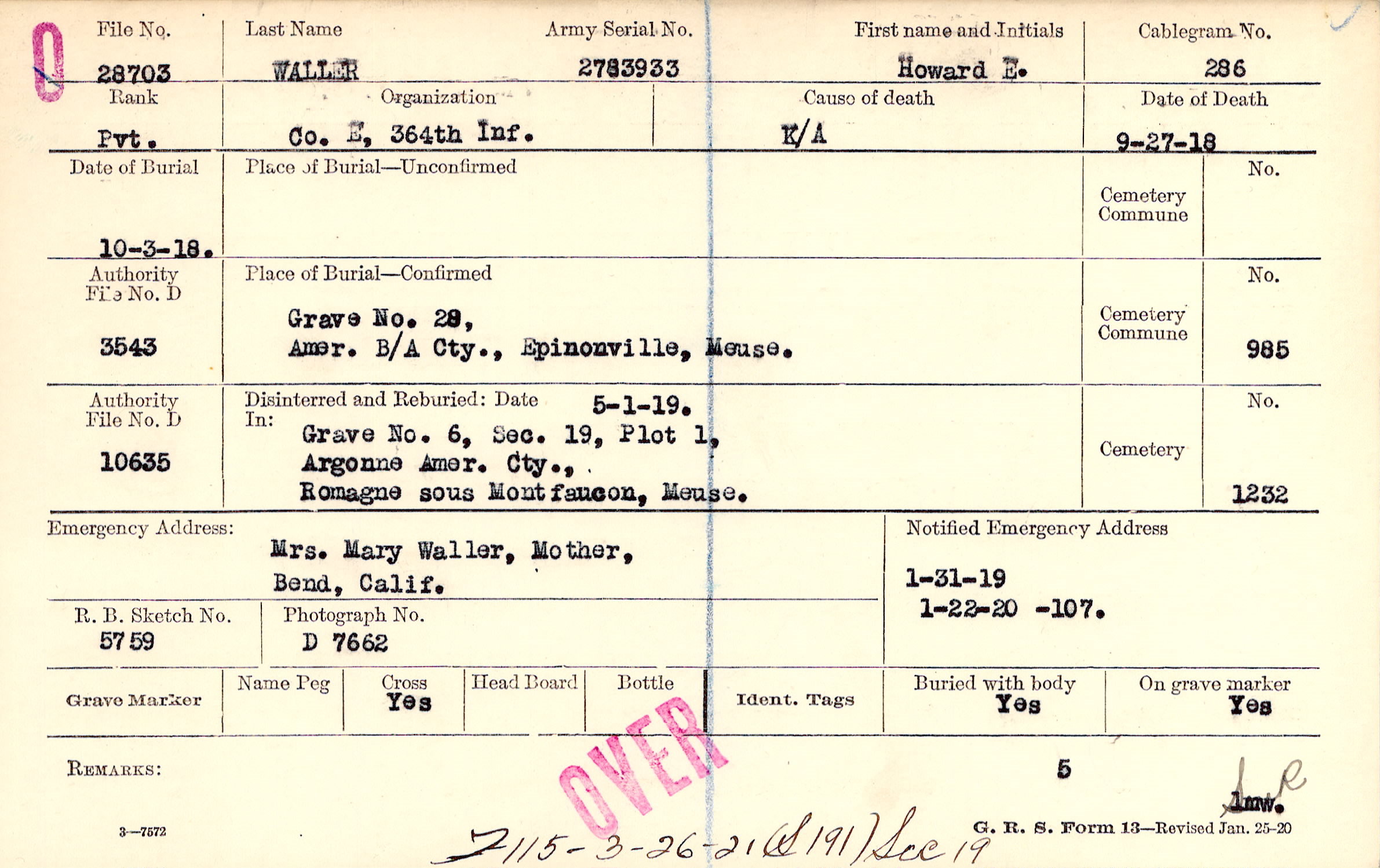 Grave 28, Amer. B/A Cty., Epinonville, Meuse.