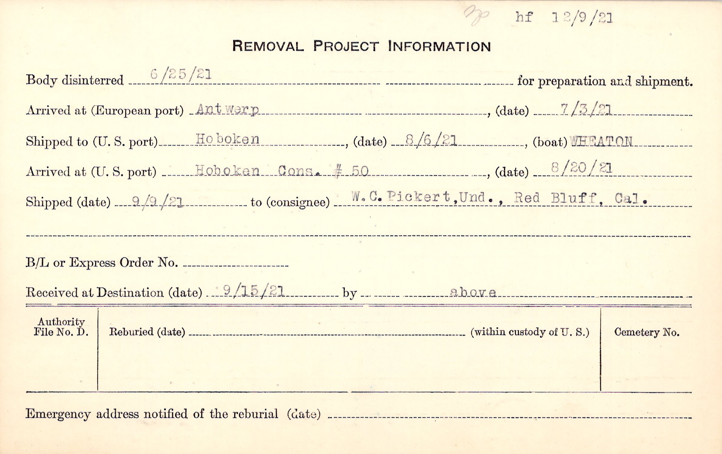 to W. C. Pickert, Und., Red Bluff, Cal.