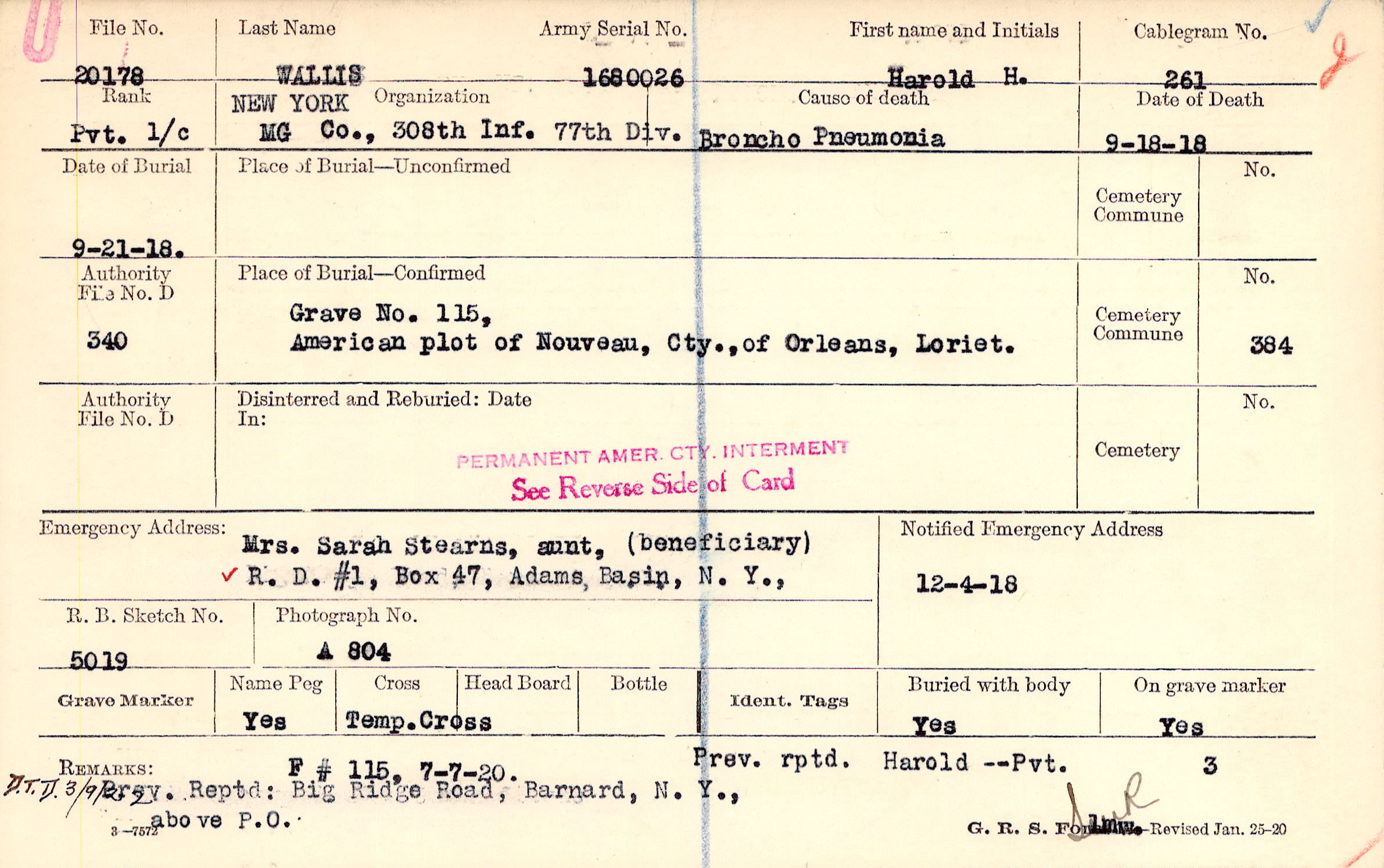 GRAVE NO. 115,AMERICAN PLOT OF NOUVEAU, CTY., OF ORLEANS, LORIET.