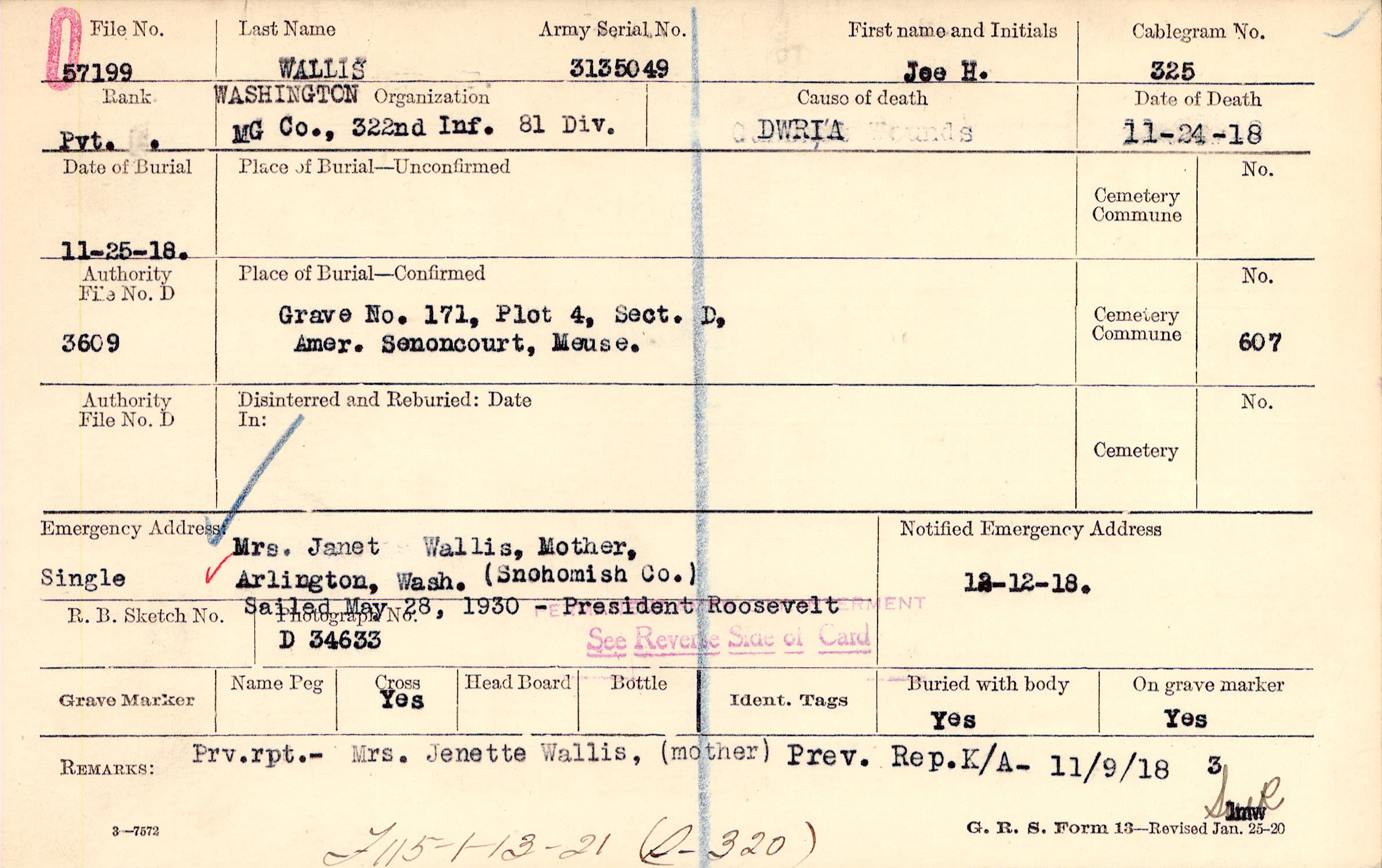 Grave 171, Plot 4, Sect. D, Amer., Senoncourt, Meuse.