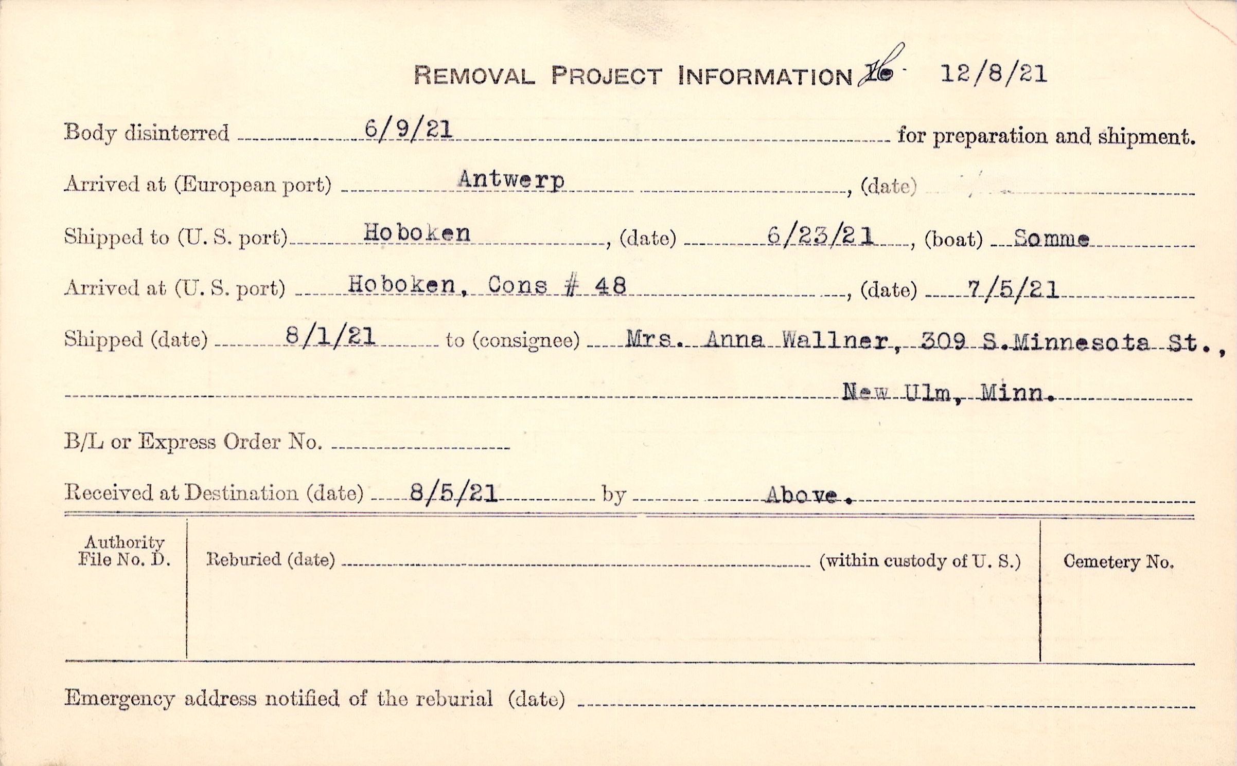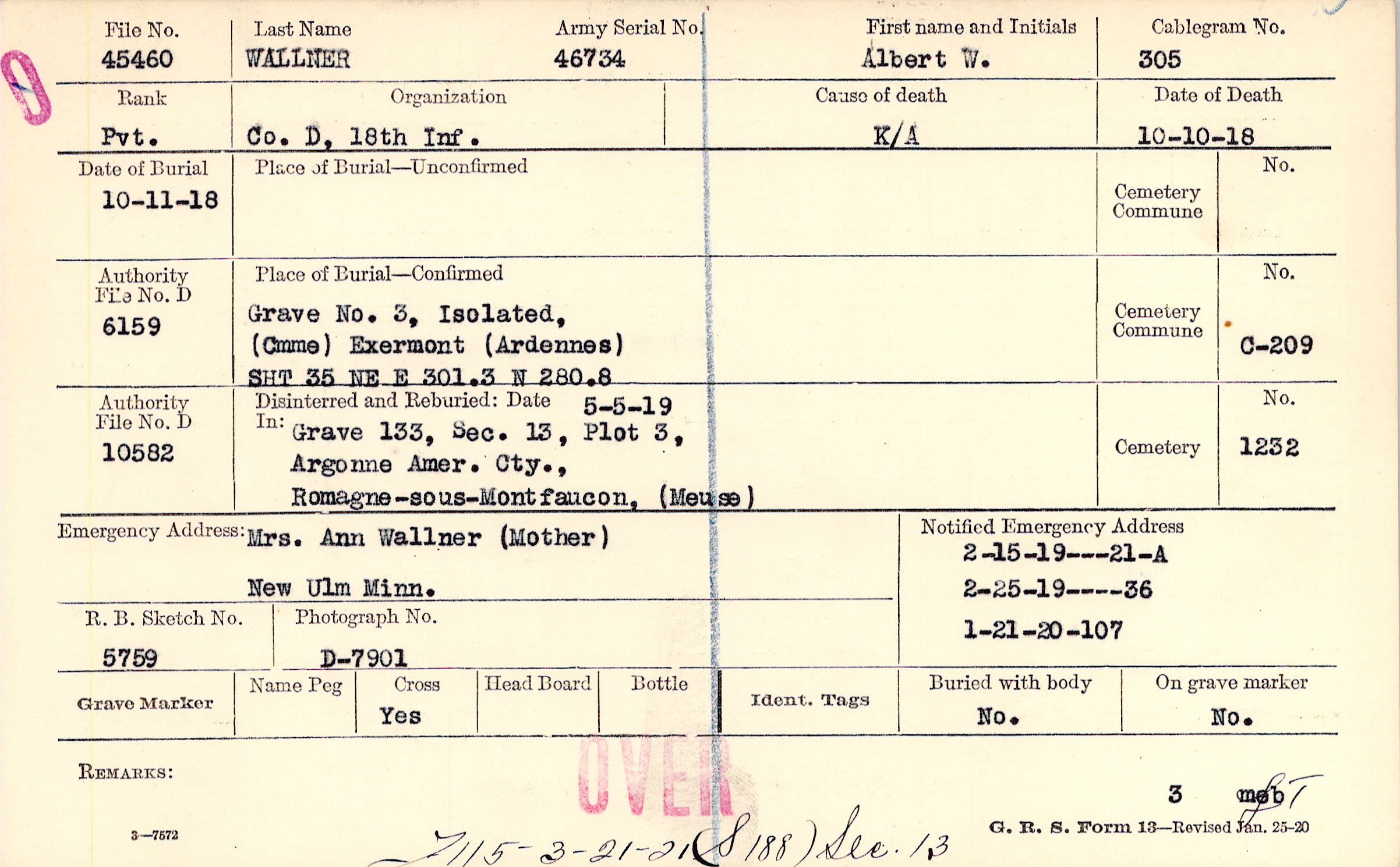 Mrs. Ann Wallner (Mother), New Ulm Minn., 3 meb F115-3-21-21 (S188) Sec. 13