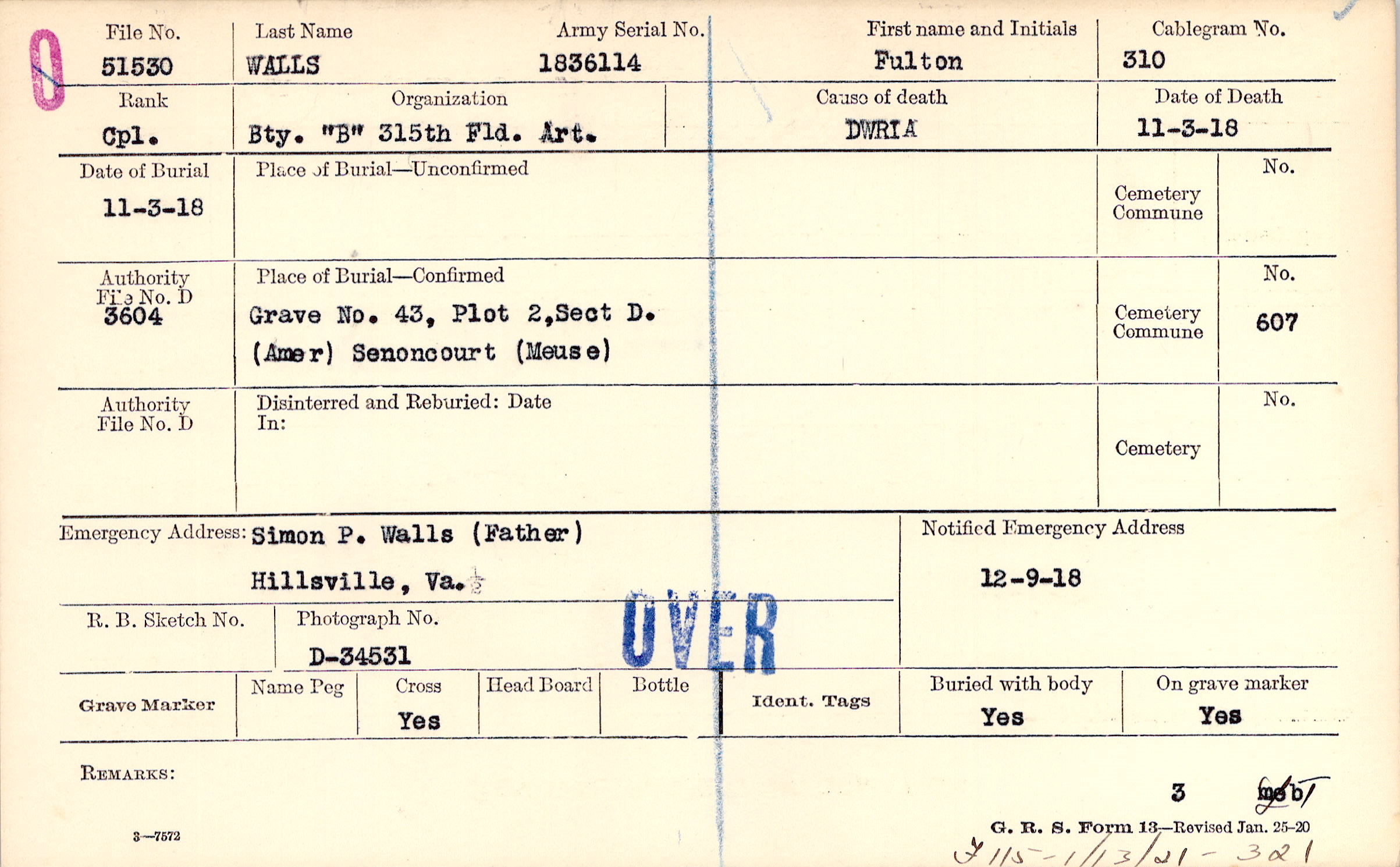 Grave 43, Plot 2, Sect. D, Amer., Senoncourt, Meuse