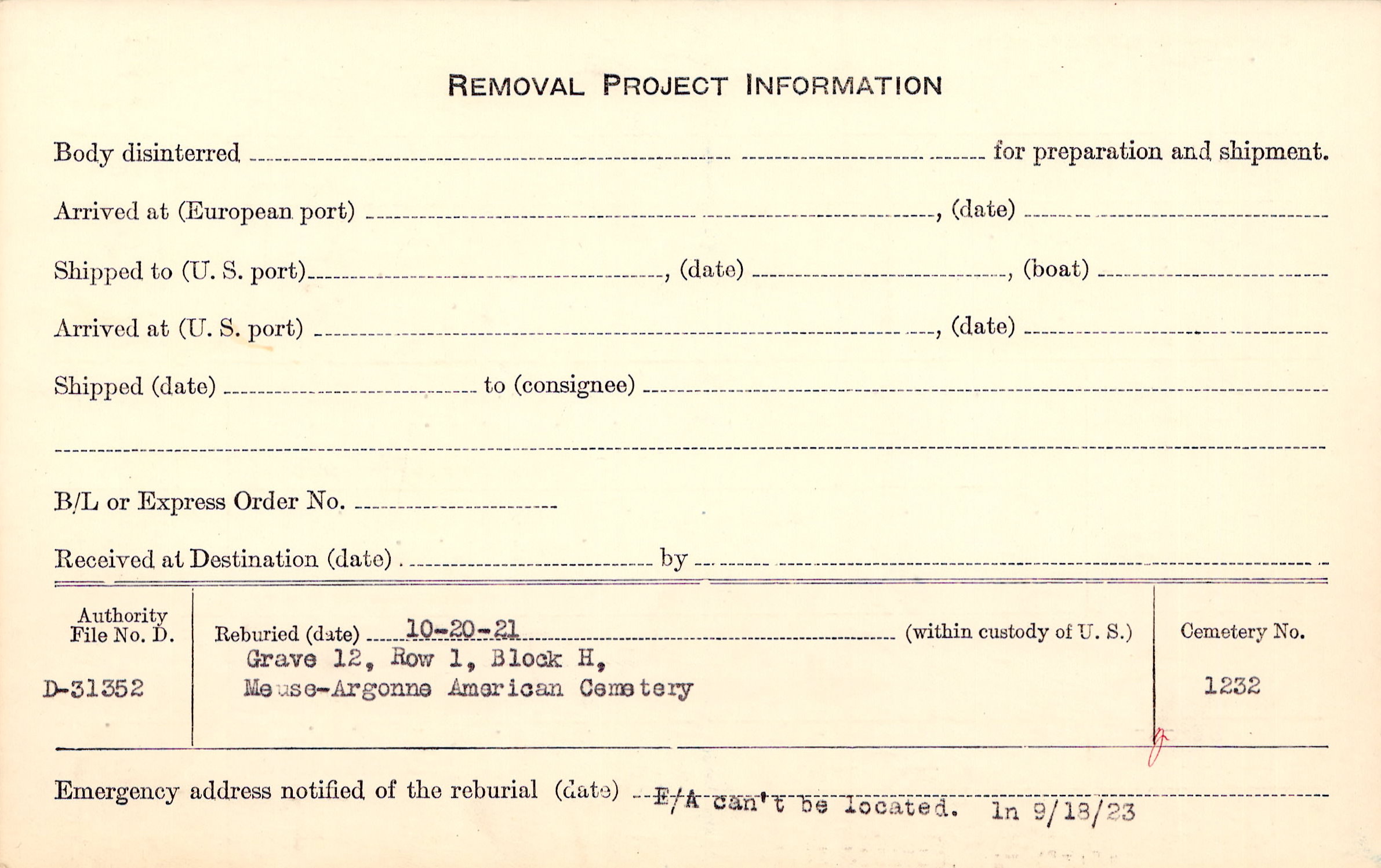E A can't be located In 09/18/1923 |