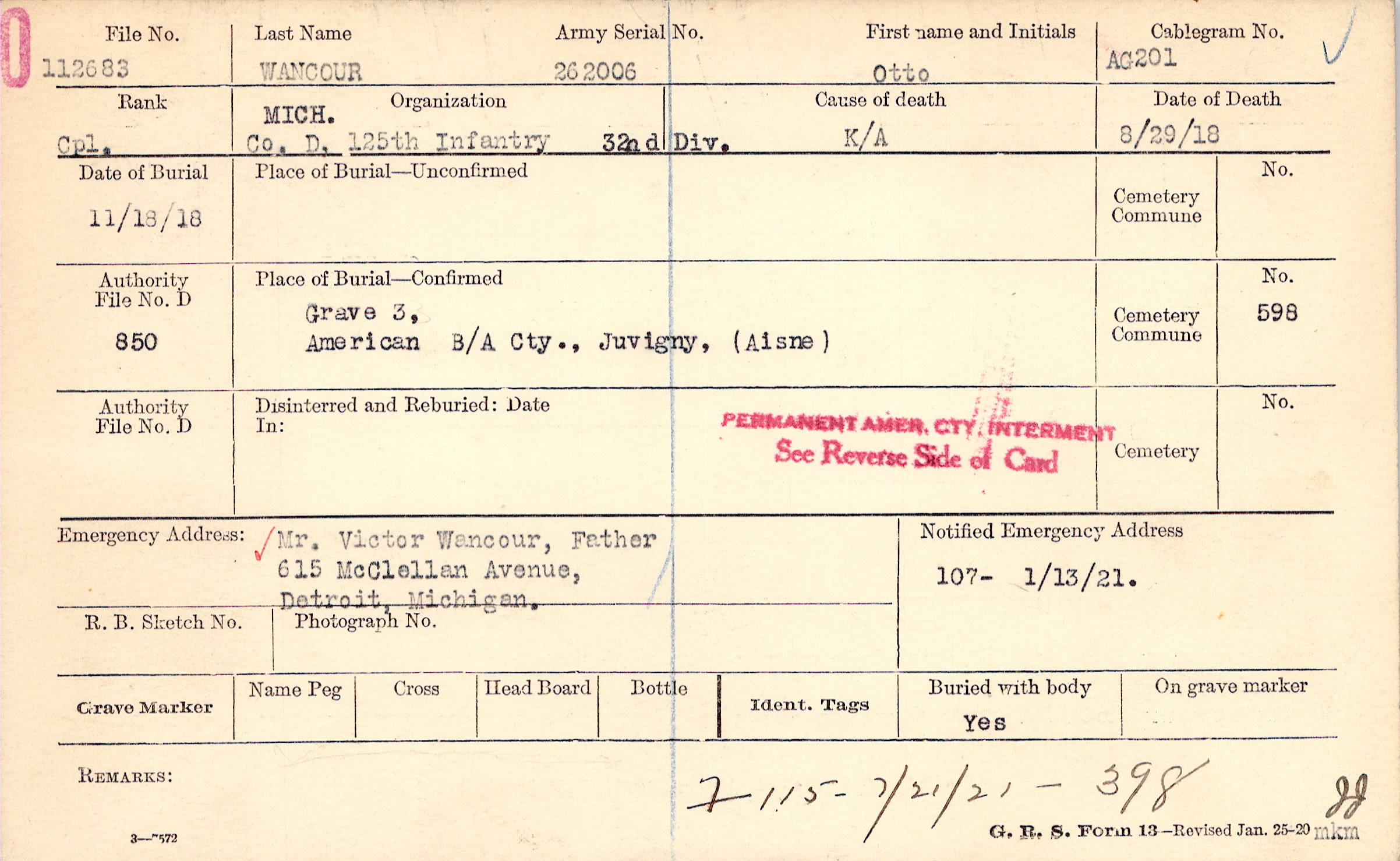Mr. Victor Wancour, Father, 615 McClellan Avenue, Detroit, Michigan.
