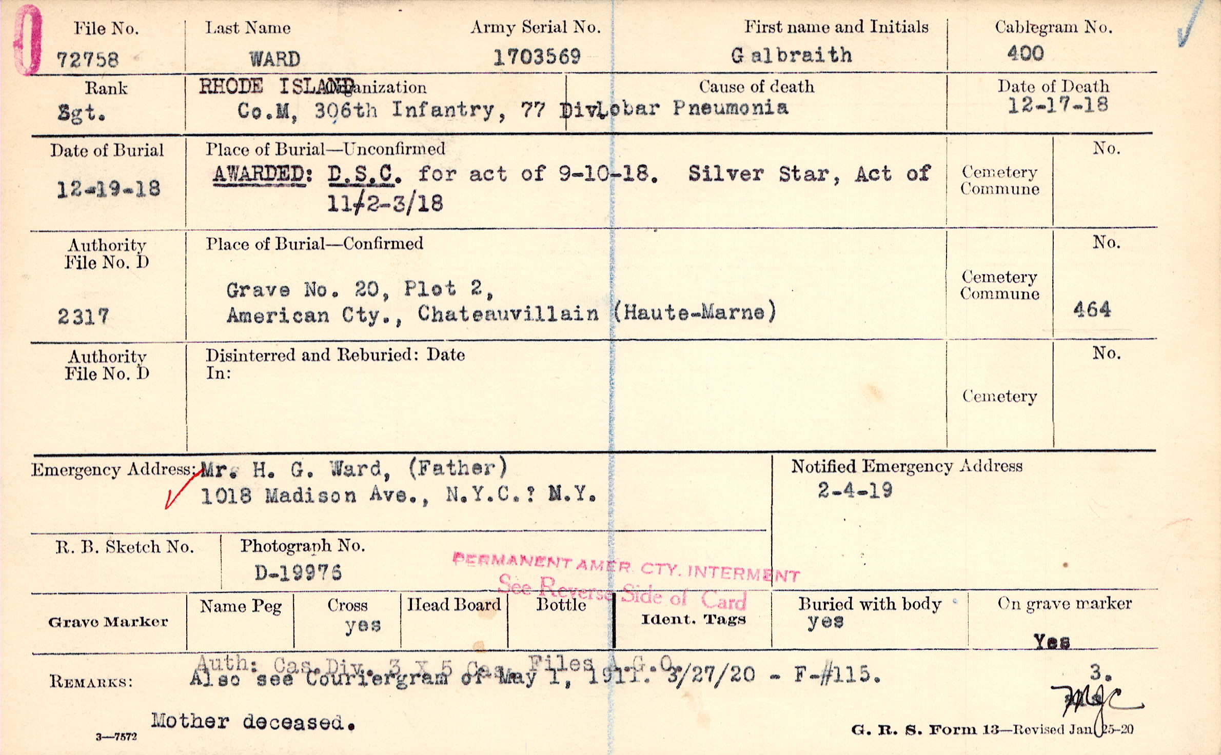Grave 20, Plot 2,American Cty., Chateauvillain (Haute-Marne)