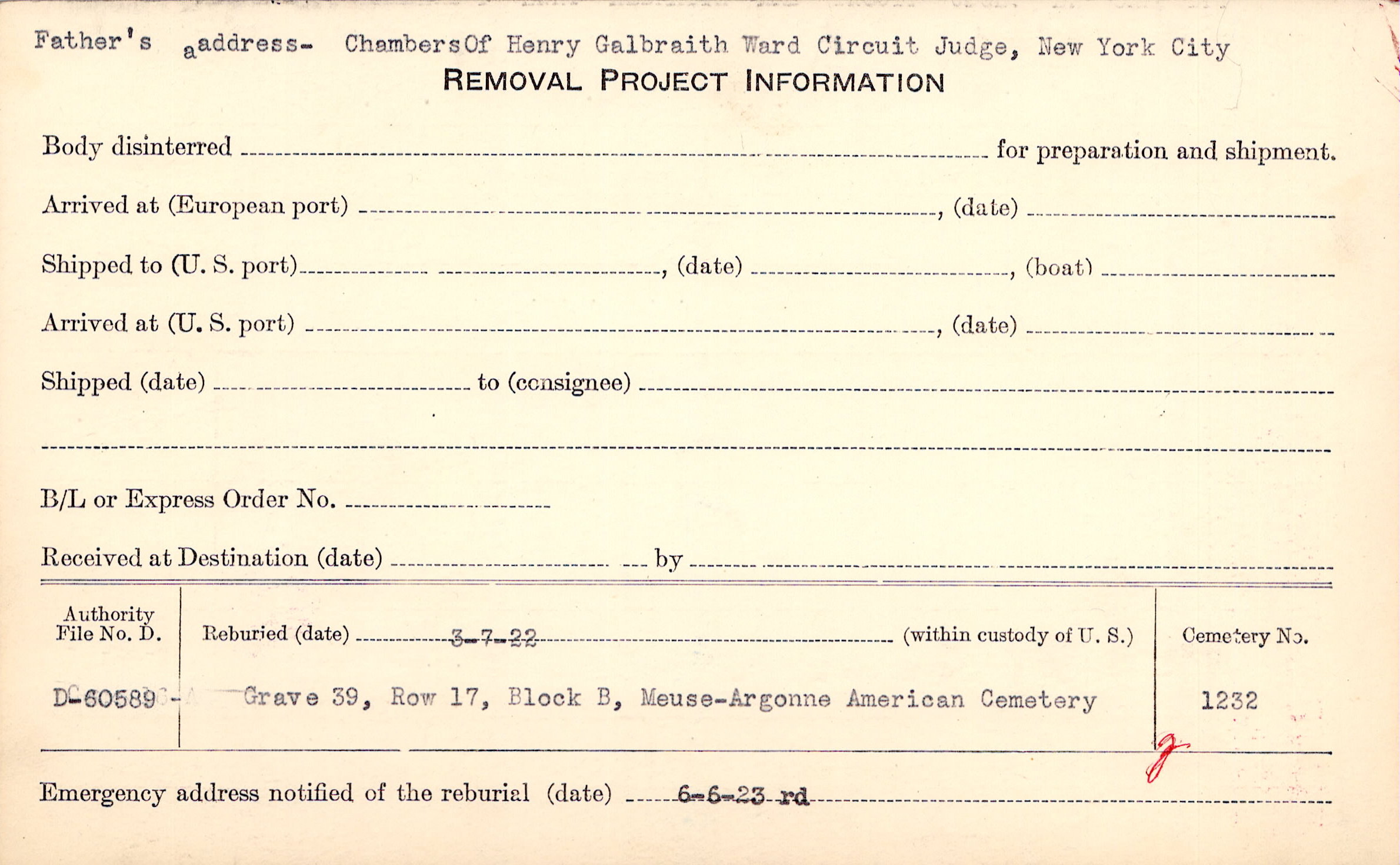 Father's address - Chambers of Henry Galbraith Ward Circuit Judge, New York City |