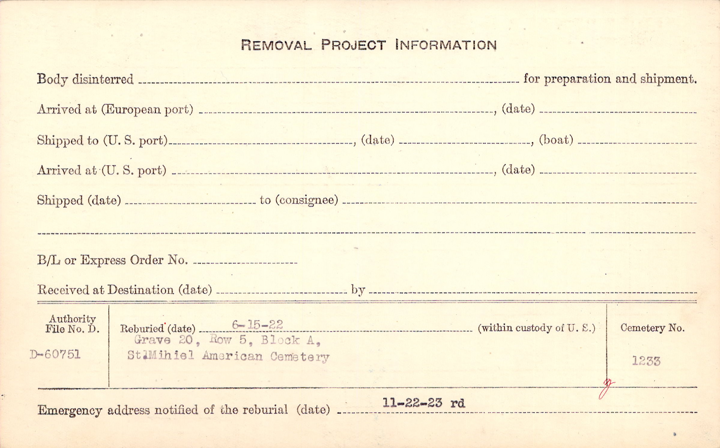 | Permanent Burial in Foreign Cemetery |