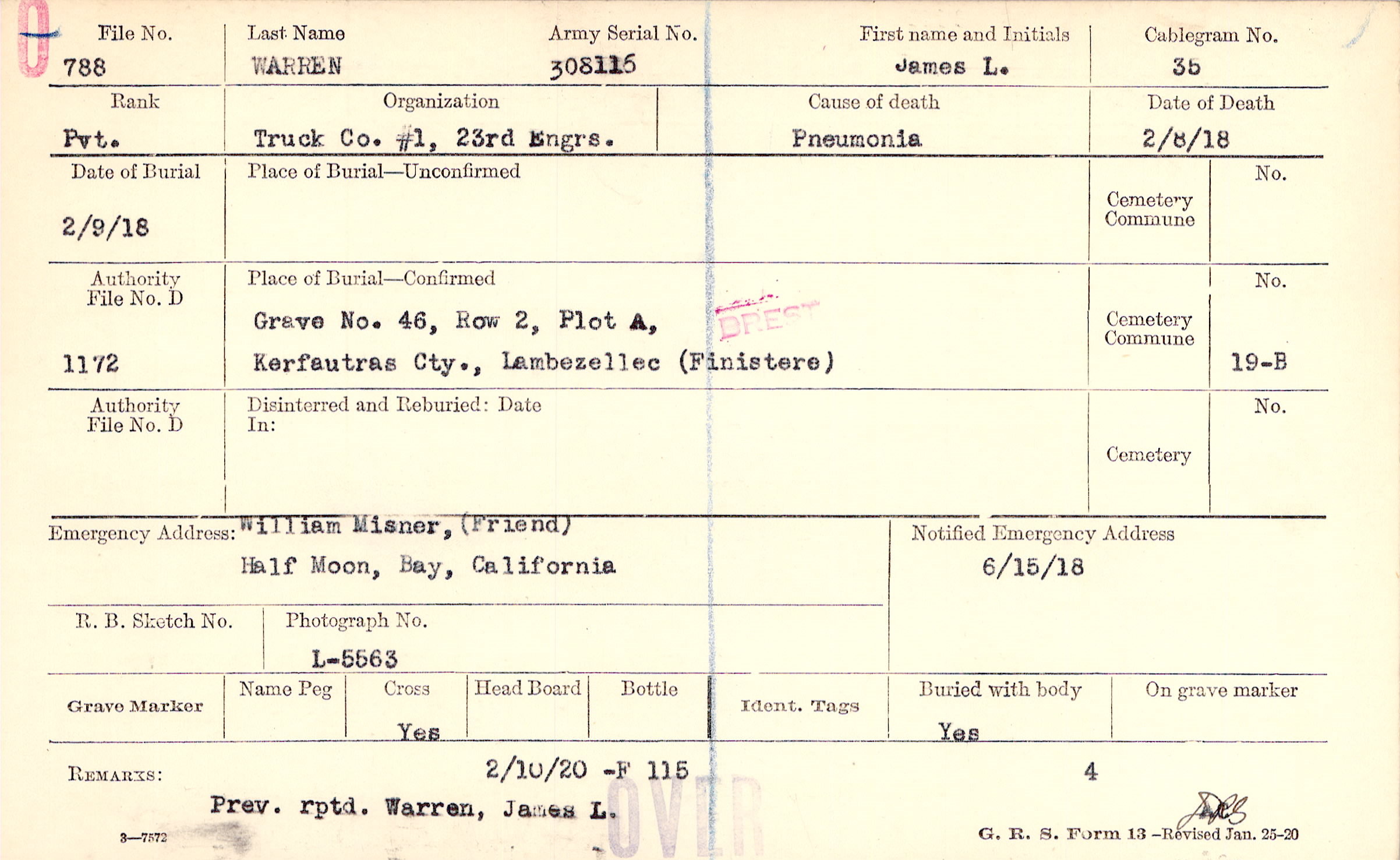 Grave 46, Row 2, Plot A, Kerfautras Cty., Lambezellec, Finistere