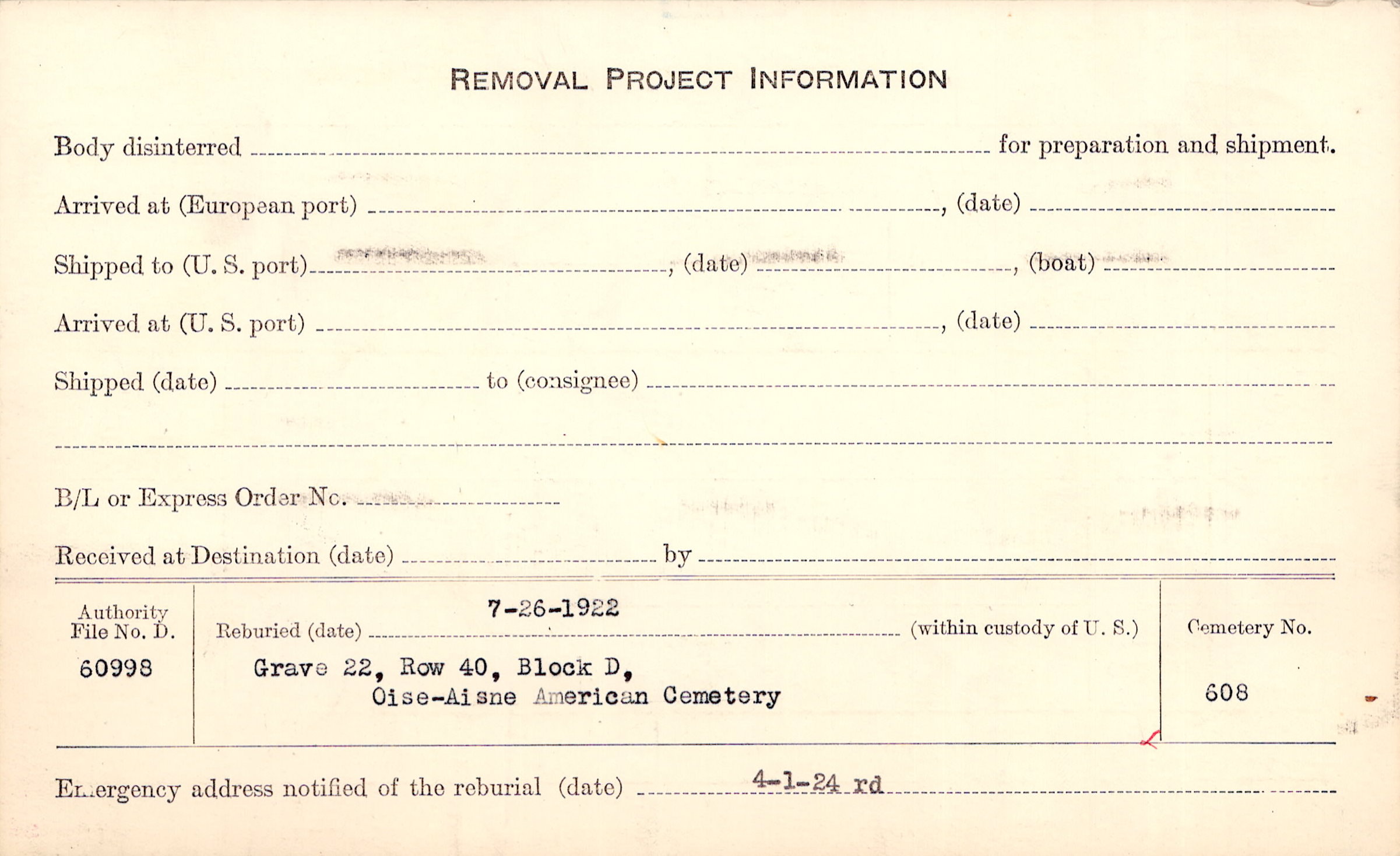 | Permanent Burial in Foreign Cemetery |