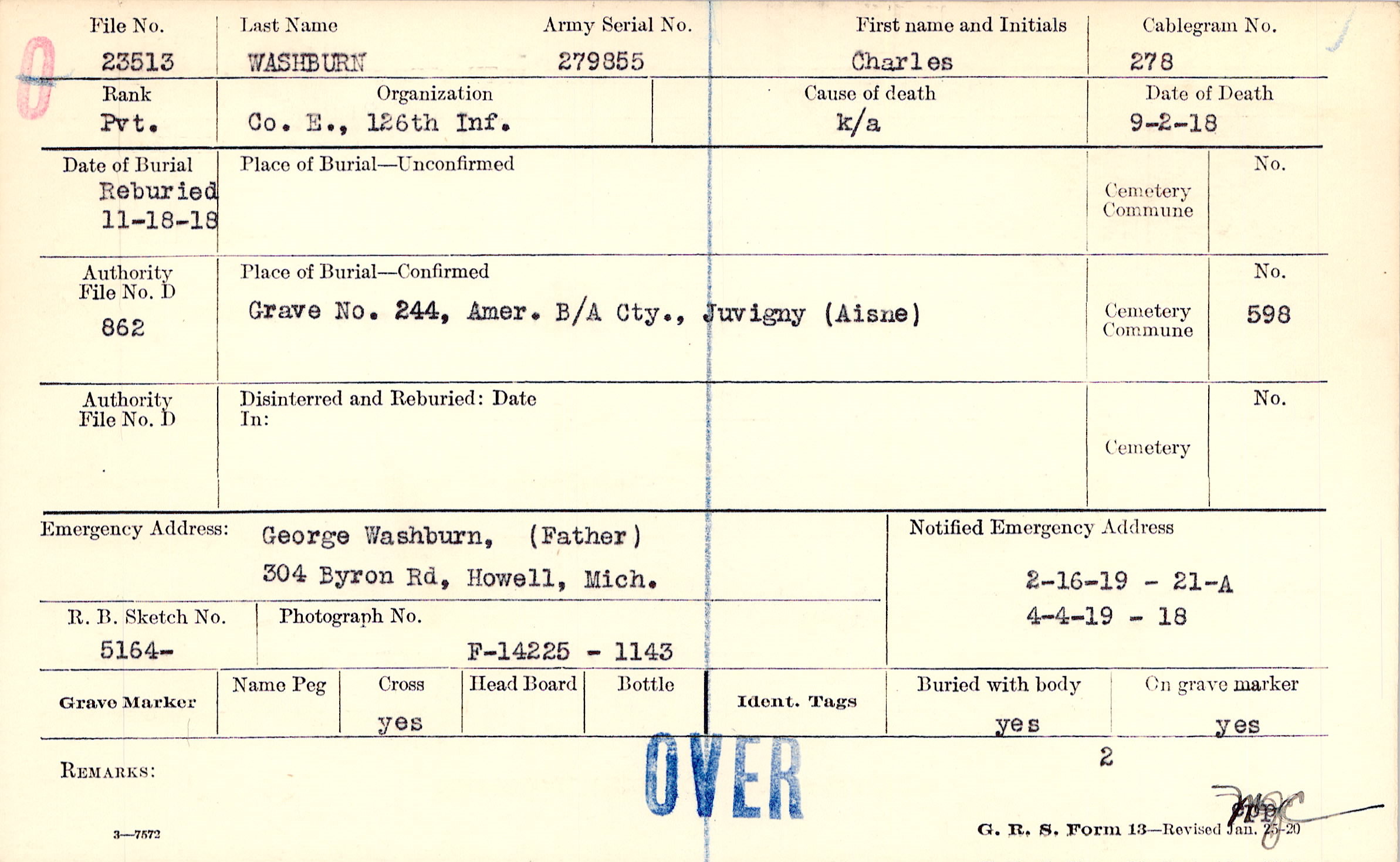 George Washburn, (Father), 304 Byron Rd, Howell, Mich.