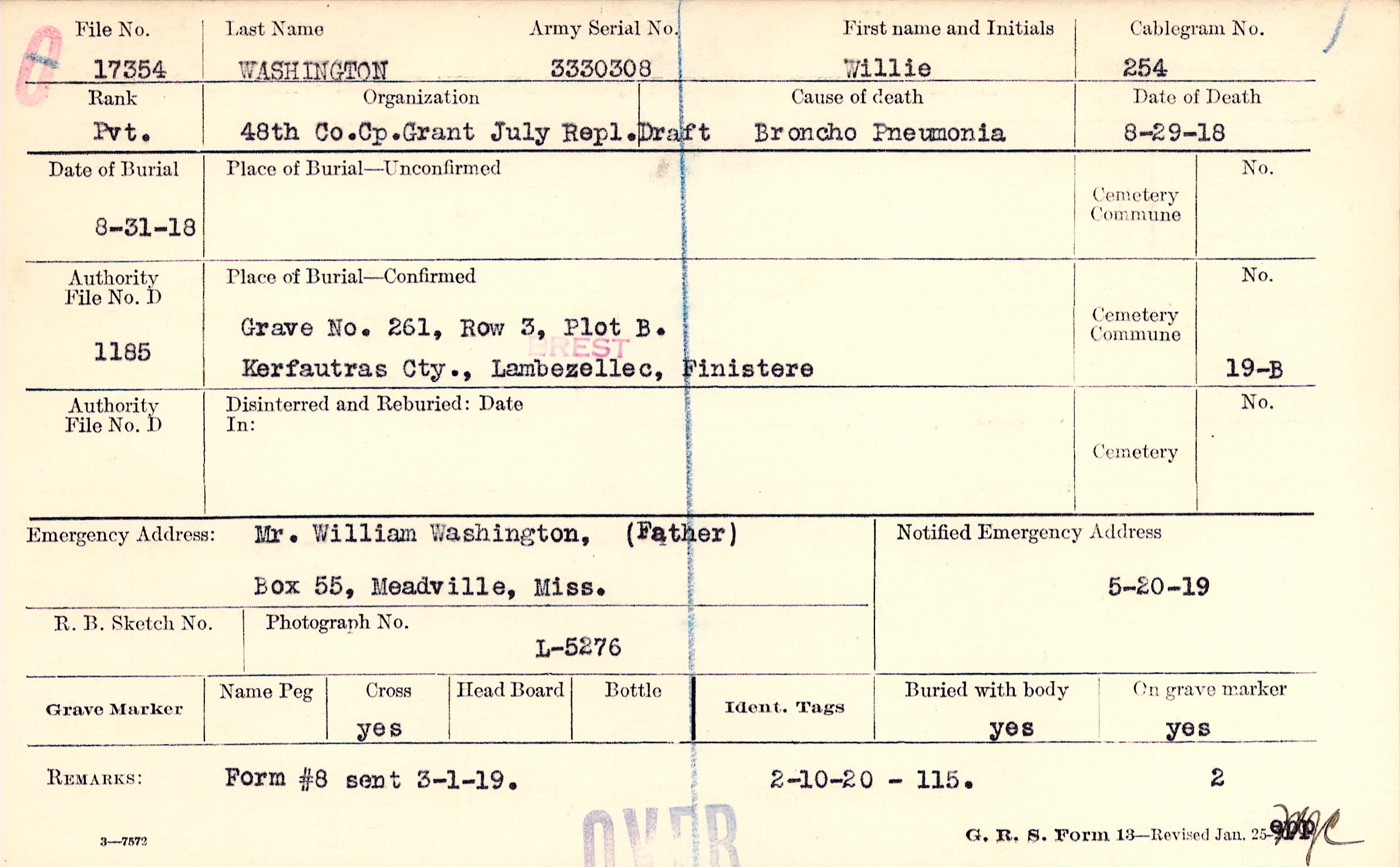 Grave 261, Row 3, Plot B., Kerfautras Cty., Lambezellec, Finistere