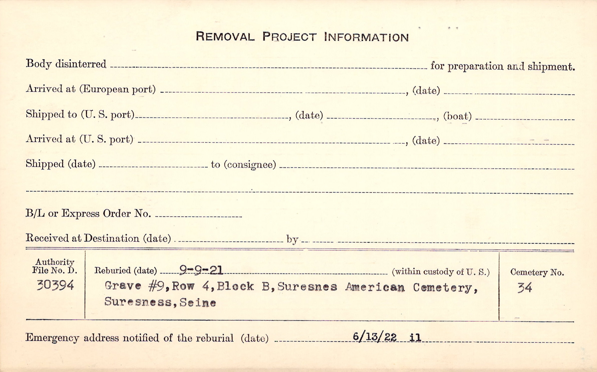 | Permanent Burial in Foreign Cemetery |