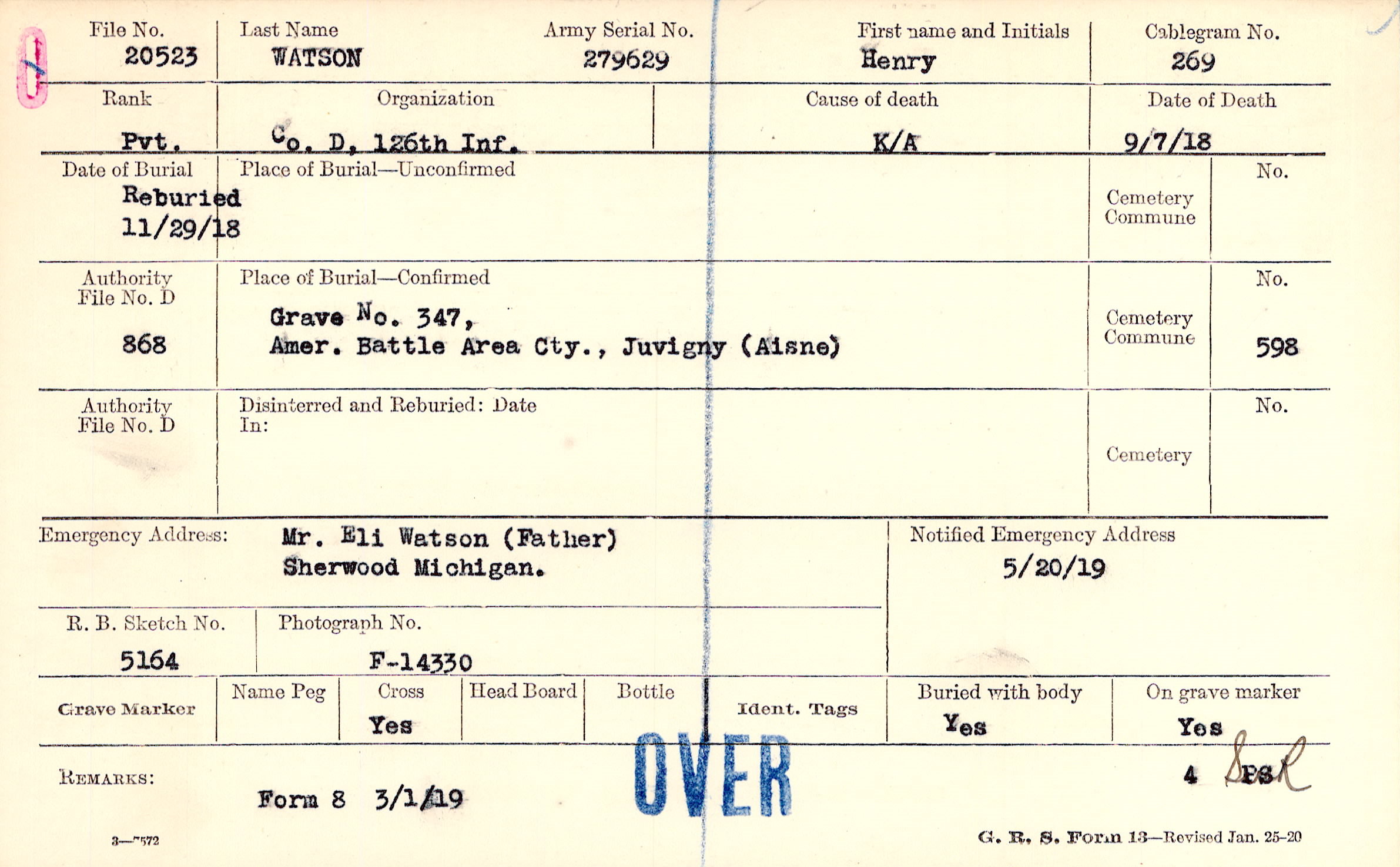 Grave 347, Amer. Battle Area Cty., Juvigny (Aisne)