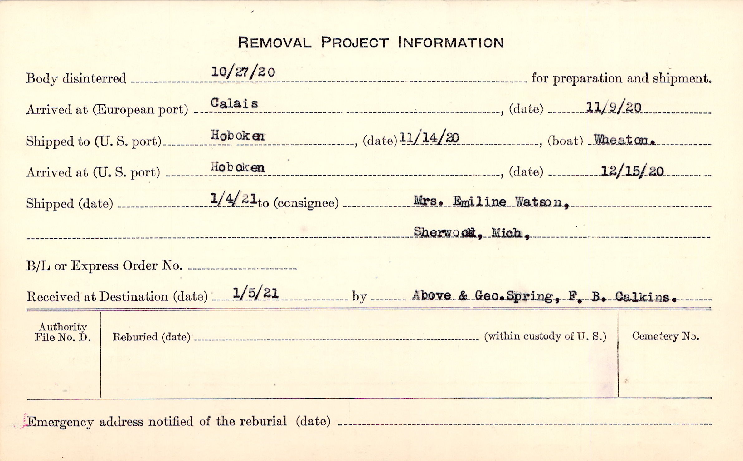 to Mrs. Emiline Watson, Sherwood, Mich.