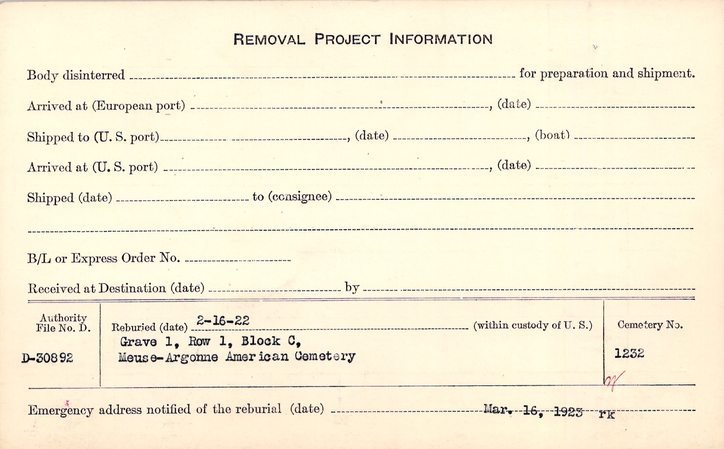 | Permanent Burial in Foreign Cemetery |