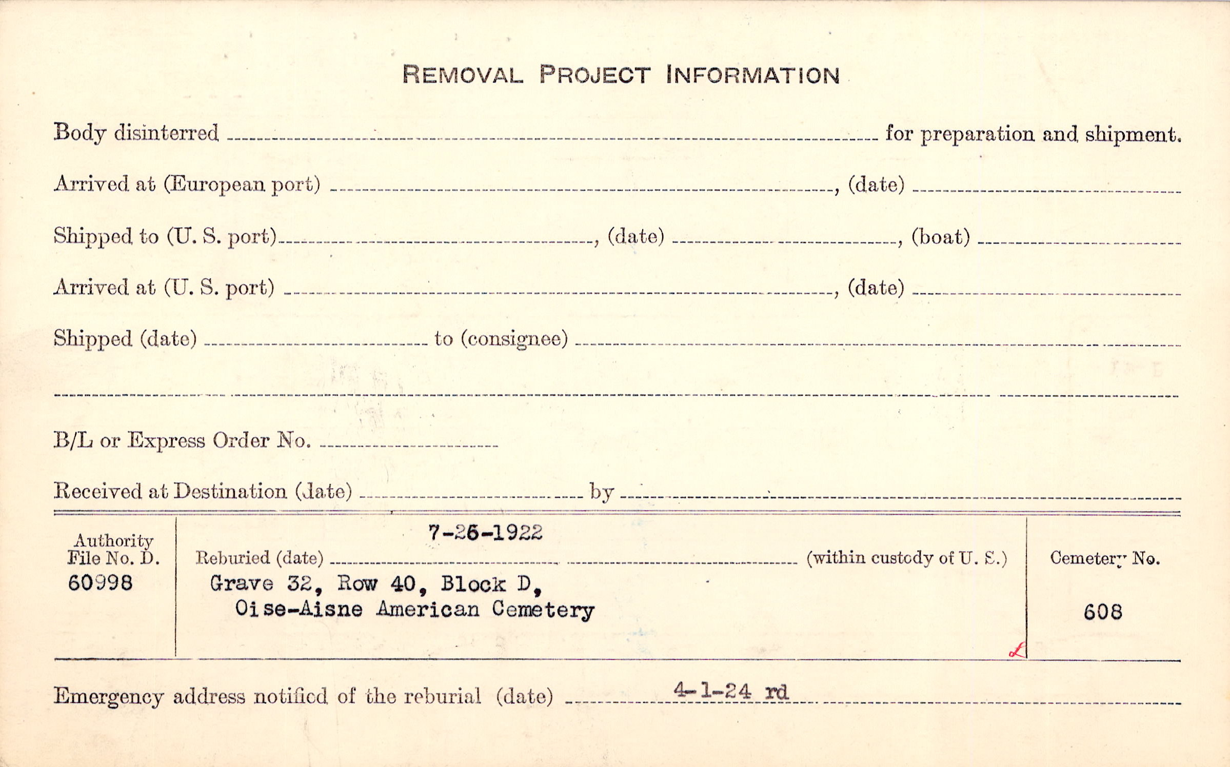 | Permanent Burial in Foreign Cemetery |