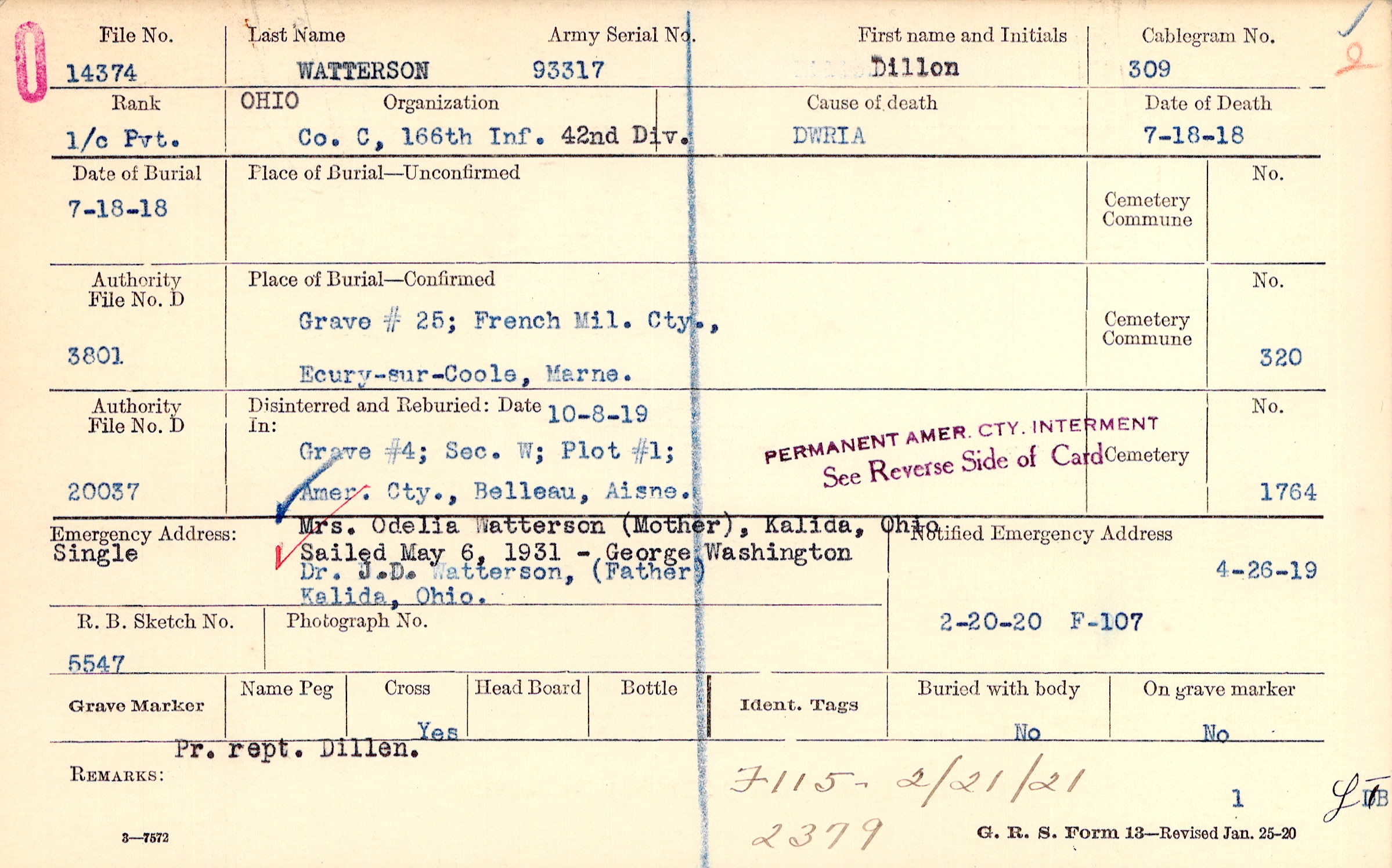 4/26/1919, Form 107: 2/20/1920