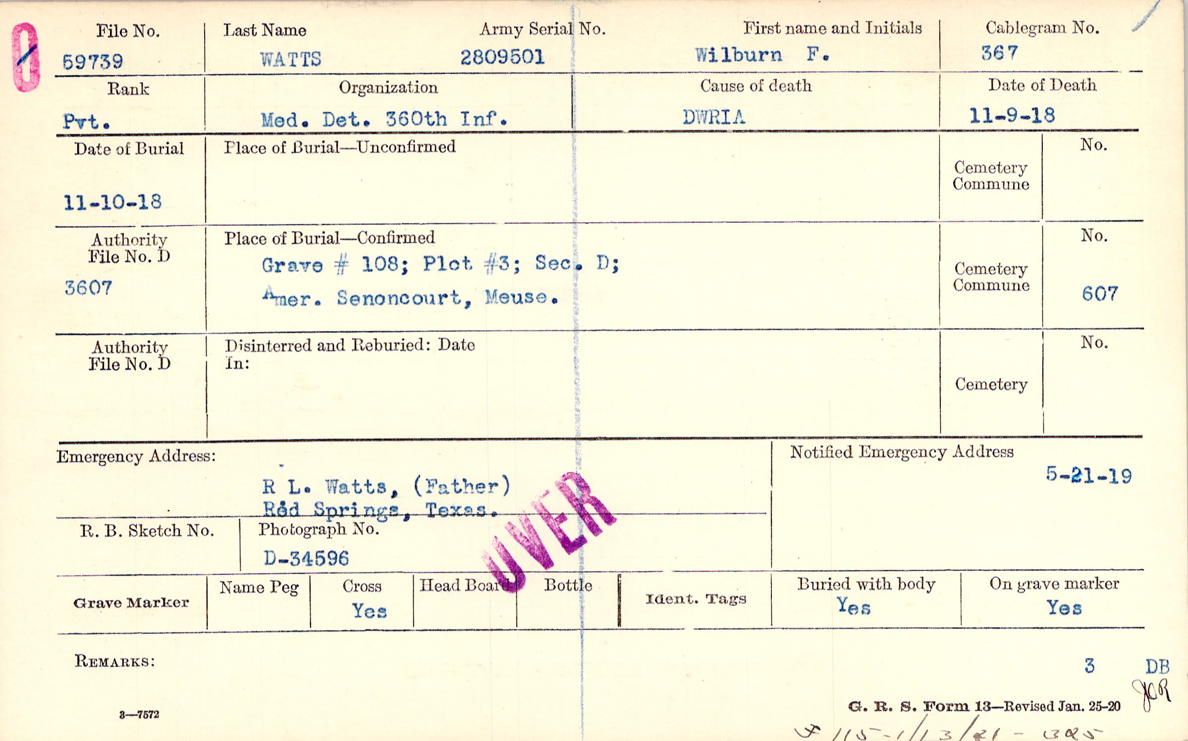 Grave #108; Plot #3; Sec. D; Amer. Senoncourt, Meuse.