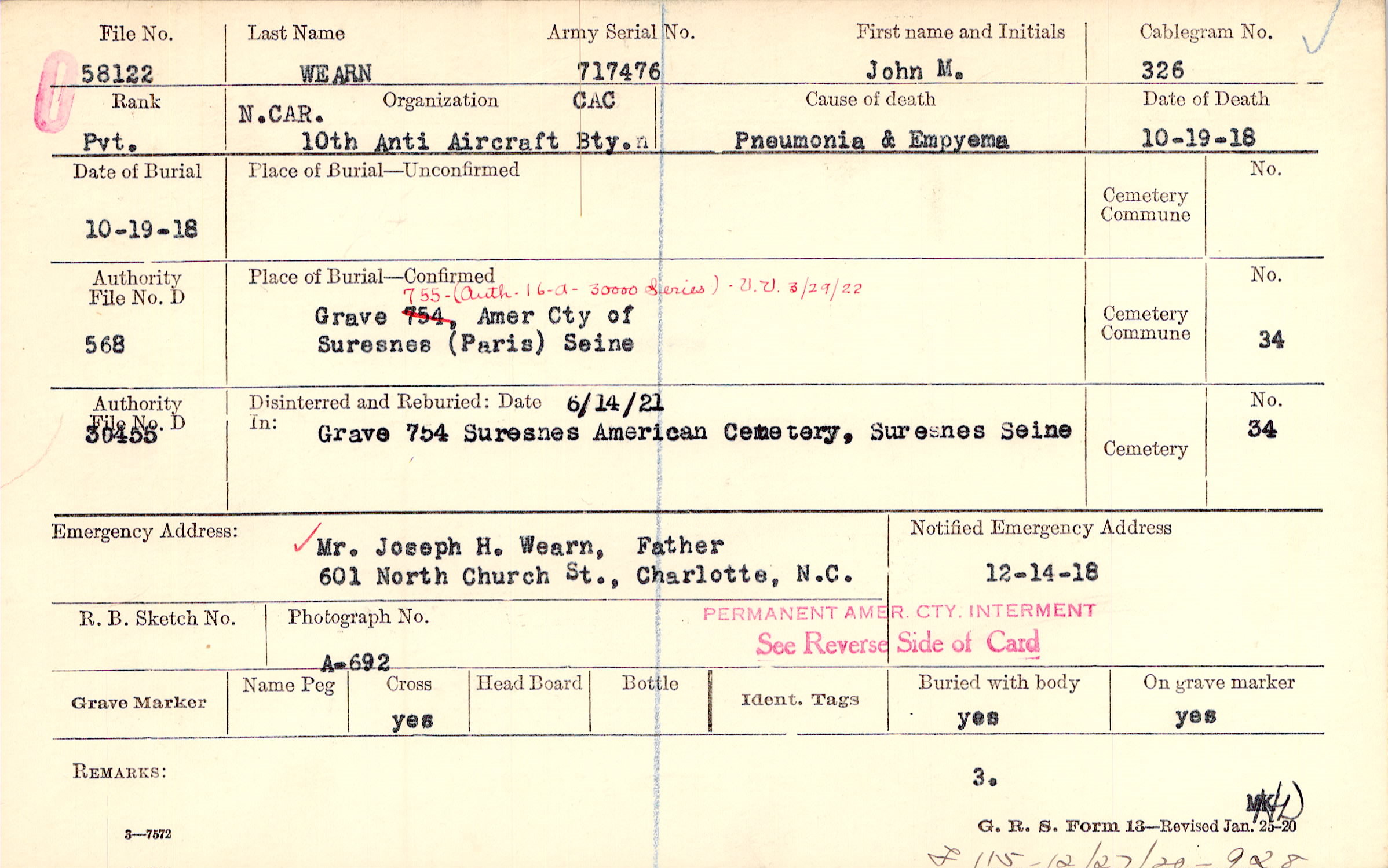 Grave 755, Amer Cty of, Suresnes, Paris, Seine