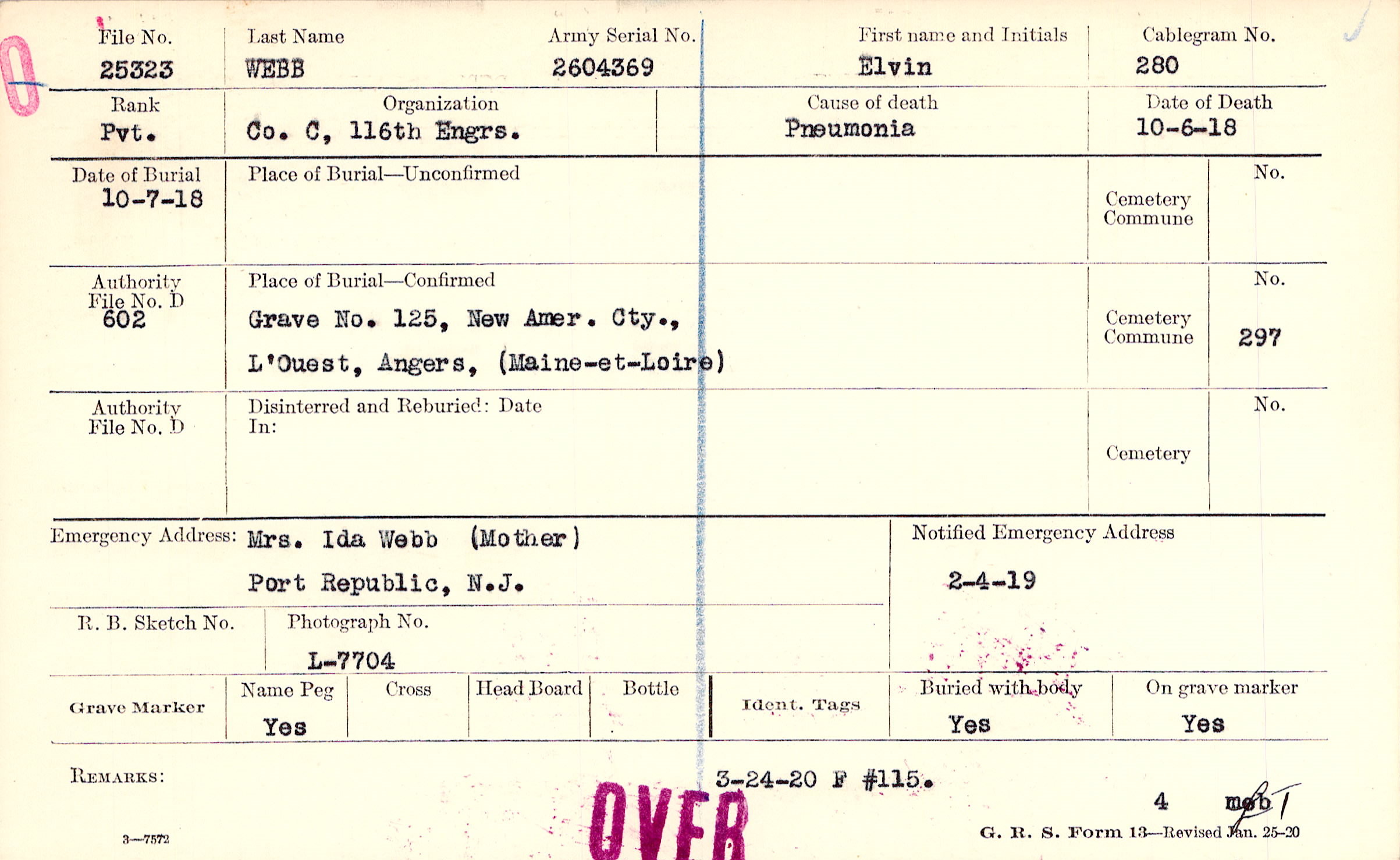 Grave 125, New Amer. Cty., L'Ouest, Angers, Maine-et-Loire