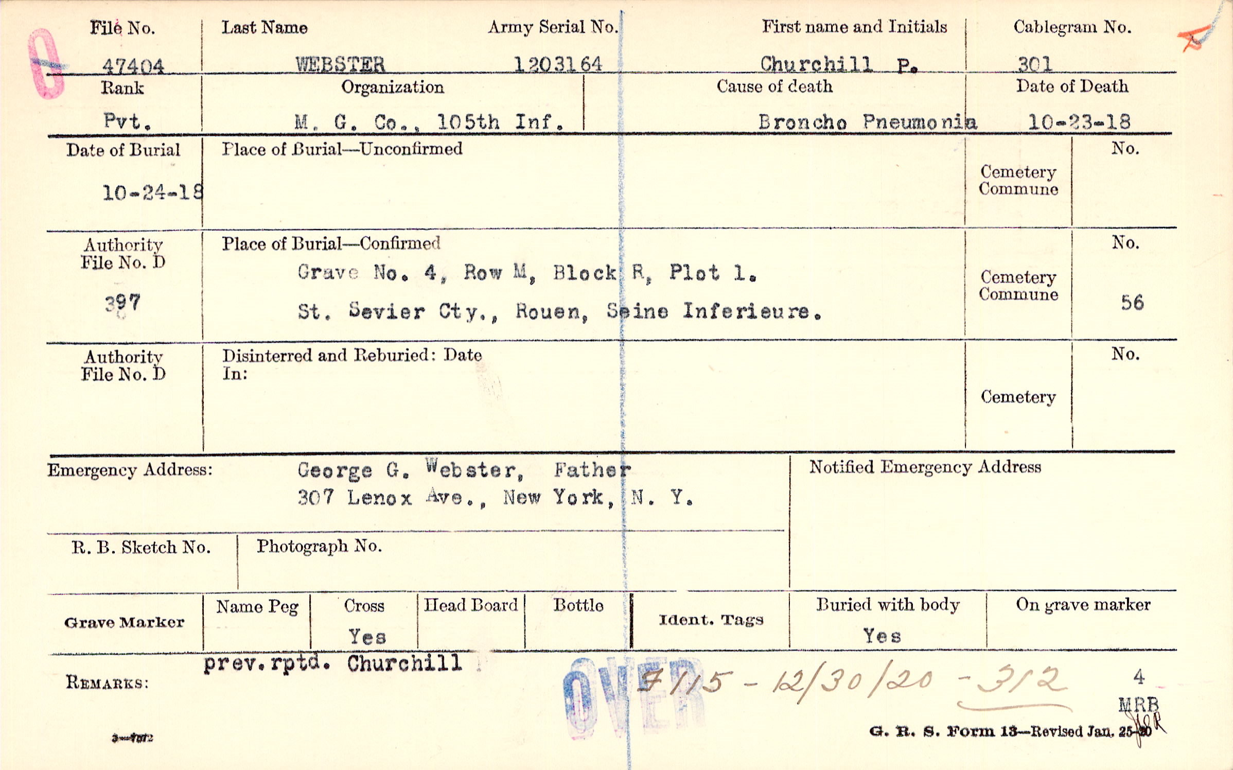Grave 4, Row M, Block R, Plot 1., St. Sevier Cty., Rouen, Seine Inferieure.