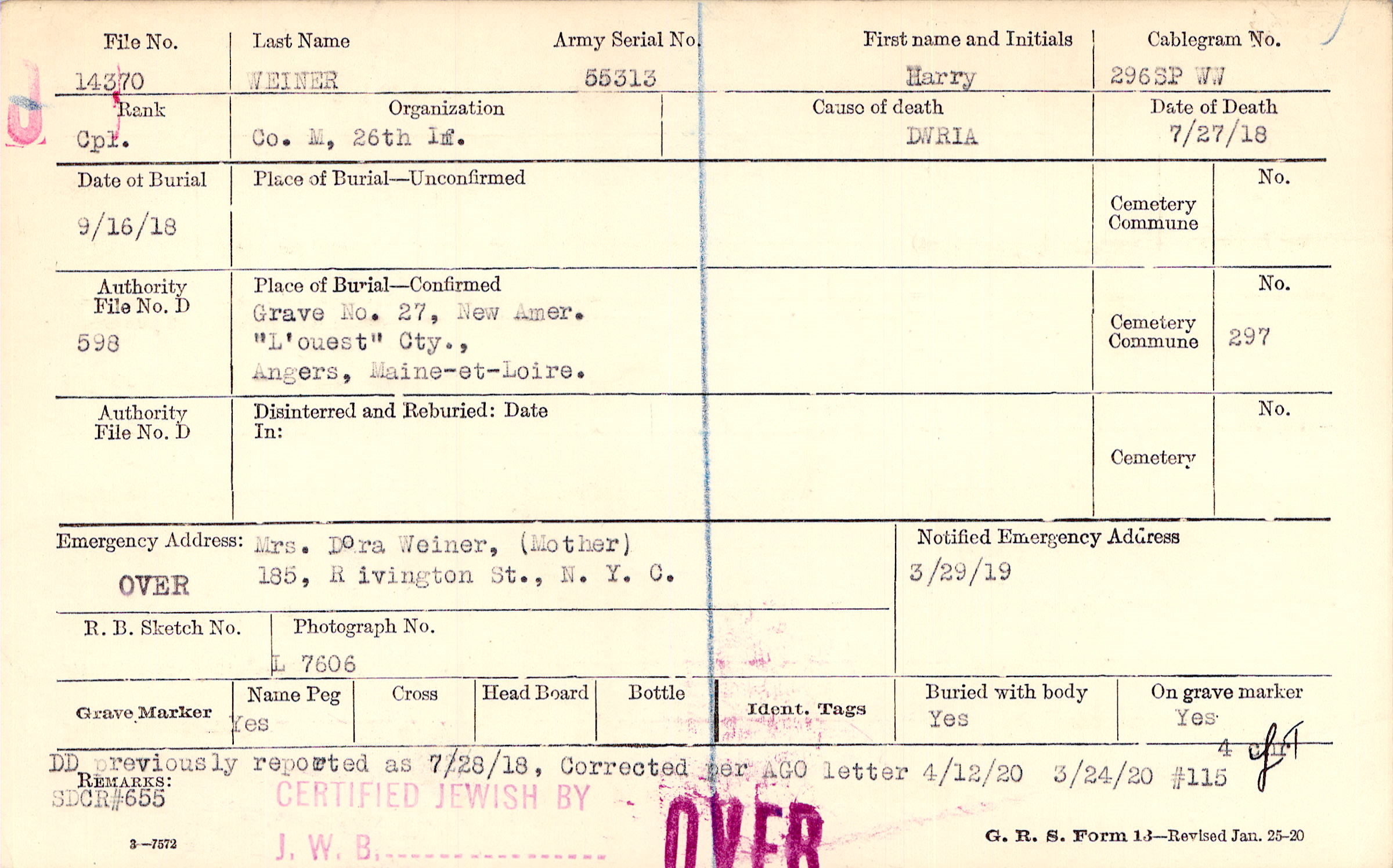 Grave 27, New Amer., "L'ouest" Cty., Angers, Maine-et-Loire.