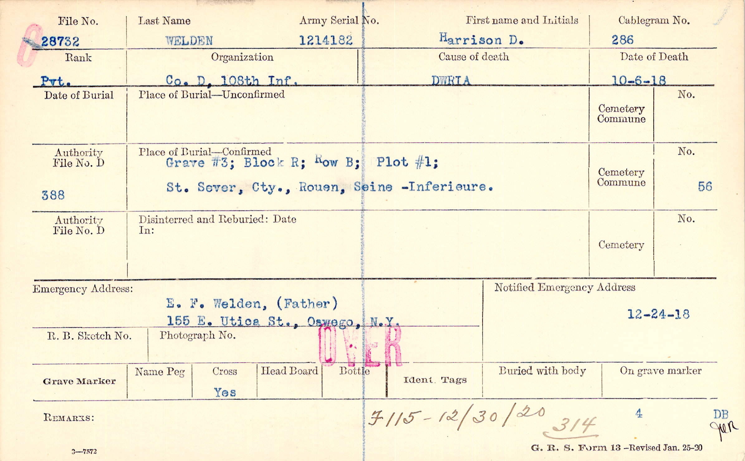 E. F. Welden (Father), 155 E. Utica St., Oswego, N.Y.