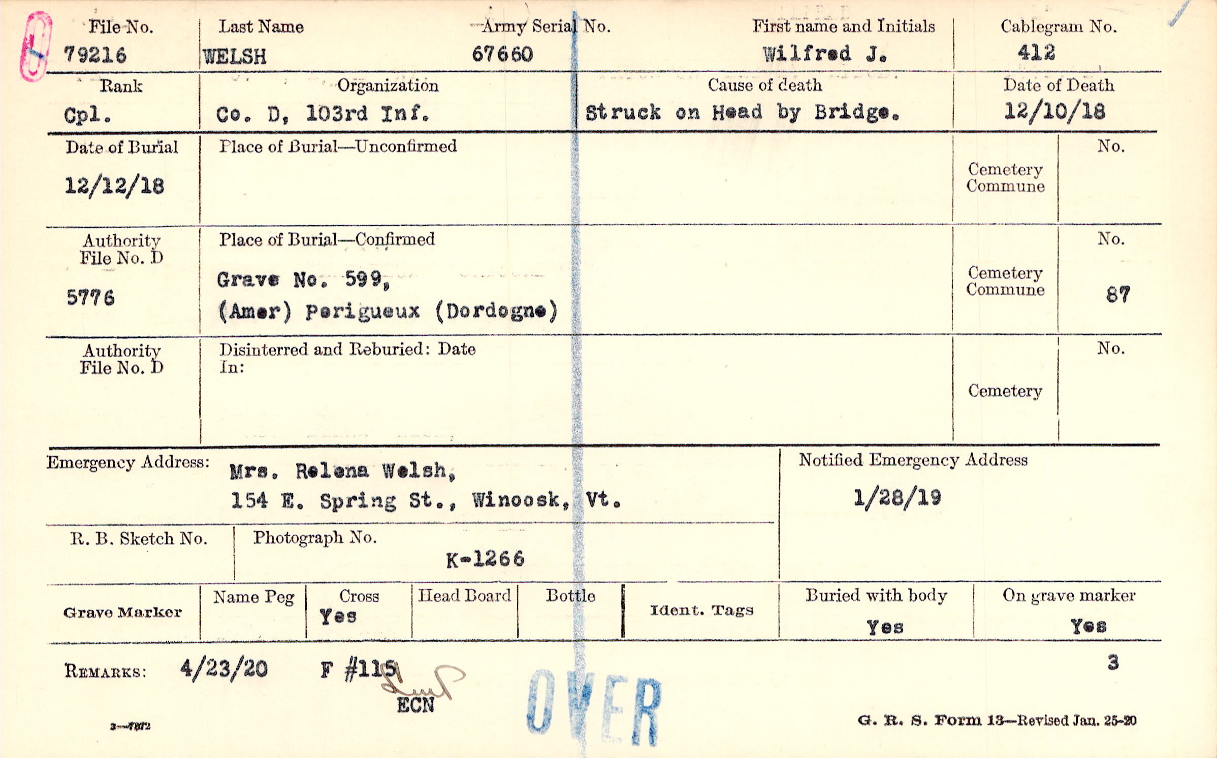 Mrs. Relena Welsh, 154 E. Spring St., Winoosk, Vt.